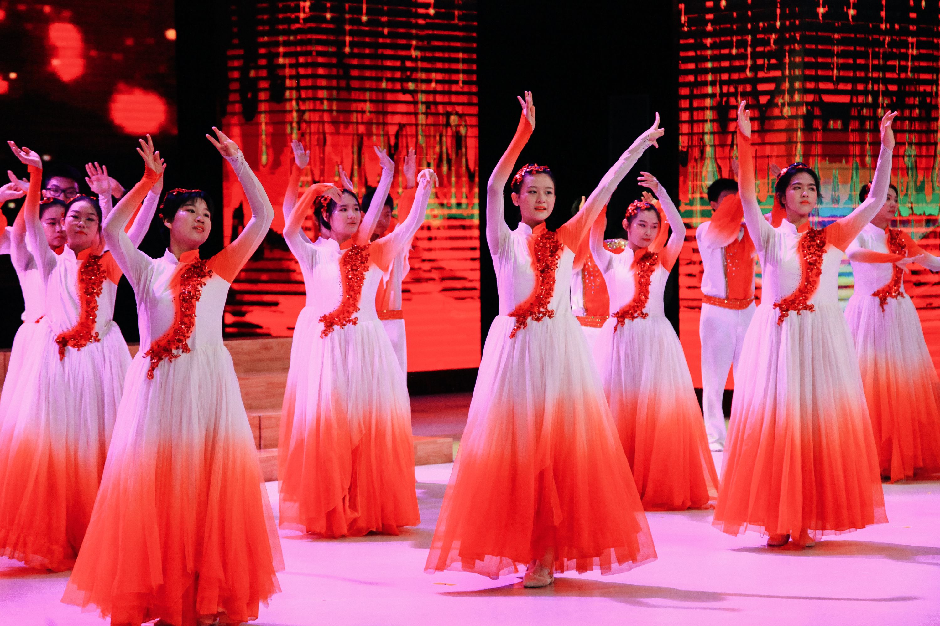 807班学生和家长献上了共同创作和拍摄的宣传片《深海勇士进军营 情暖官兵志愿行》,告诫青少年践行爱国主义要落实在爱校的具体行动中,落实在努力学习掌握好科学文化知识上。最后,22位同学表演了歌舞《灯火里的中国》,歌颂了盛世中国灯火下辉煌的建设成就。