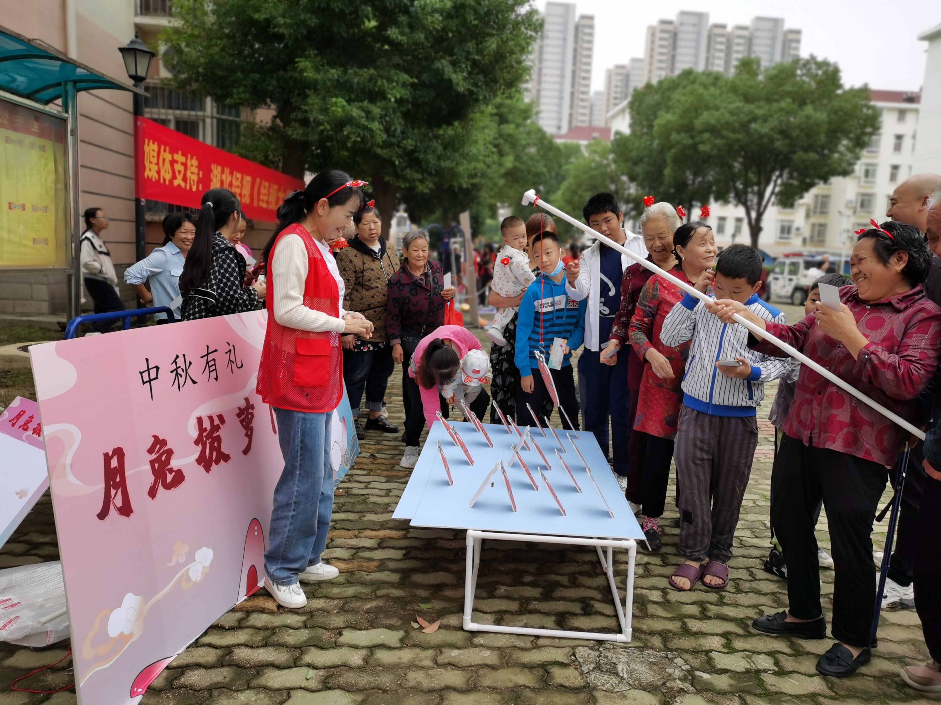 另一边,中秋主题的欢乐夹月饼、玉兔拔萝卜、玉兔吃月饼等特色活动也如火如荼开展,居民们在运动中感受中华传统文化的独特魅力。