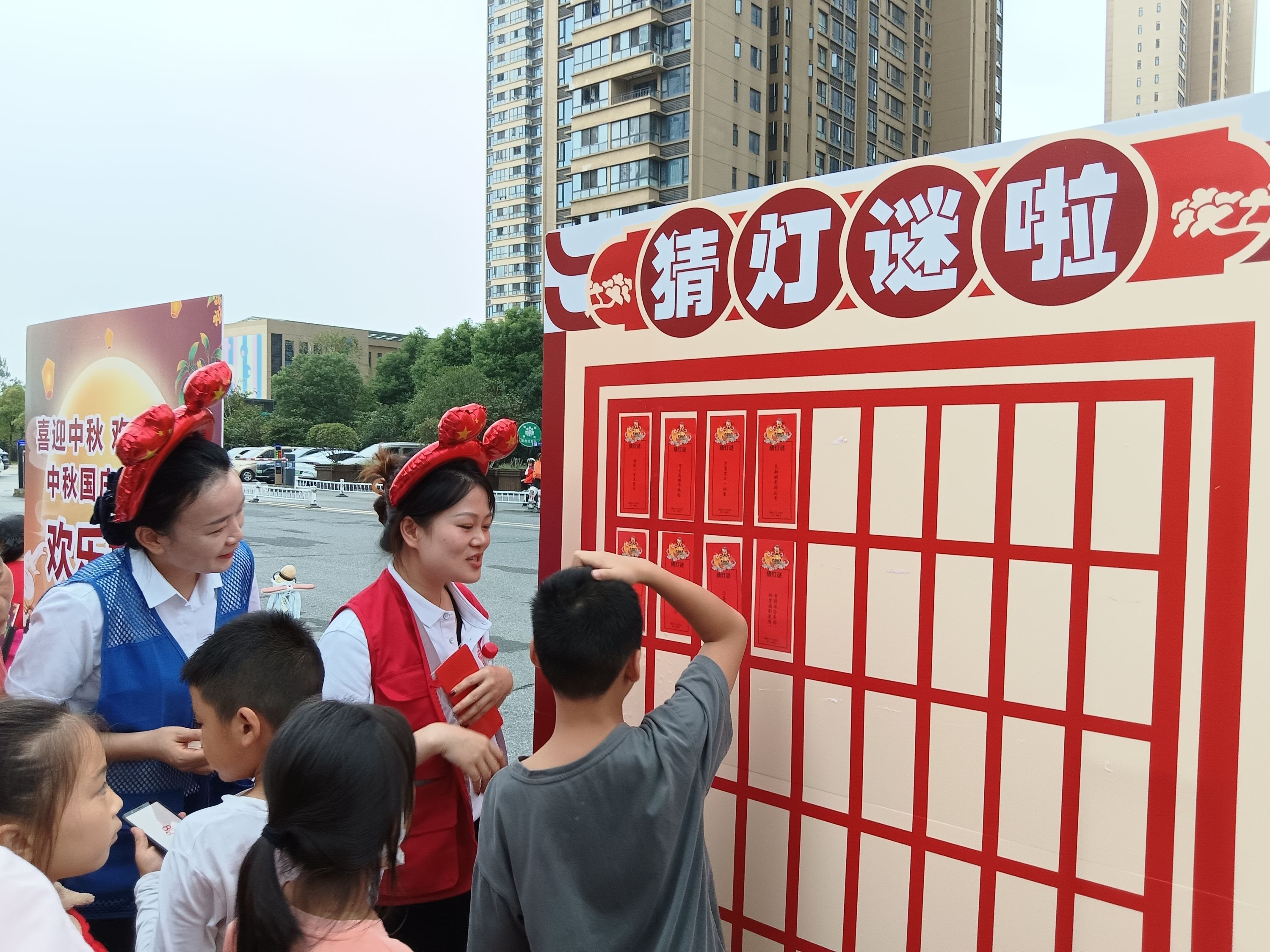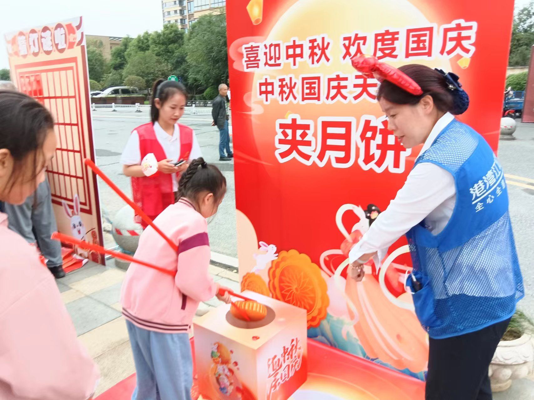 集市里还特别设置了丰富的游玩活动,大家有序排队参与猜灯谜、趣味投壶、夹月饼等传统游戏,体会古人娱乐方式,体验传统文化的魅力。