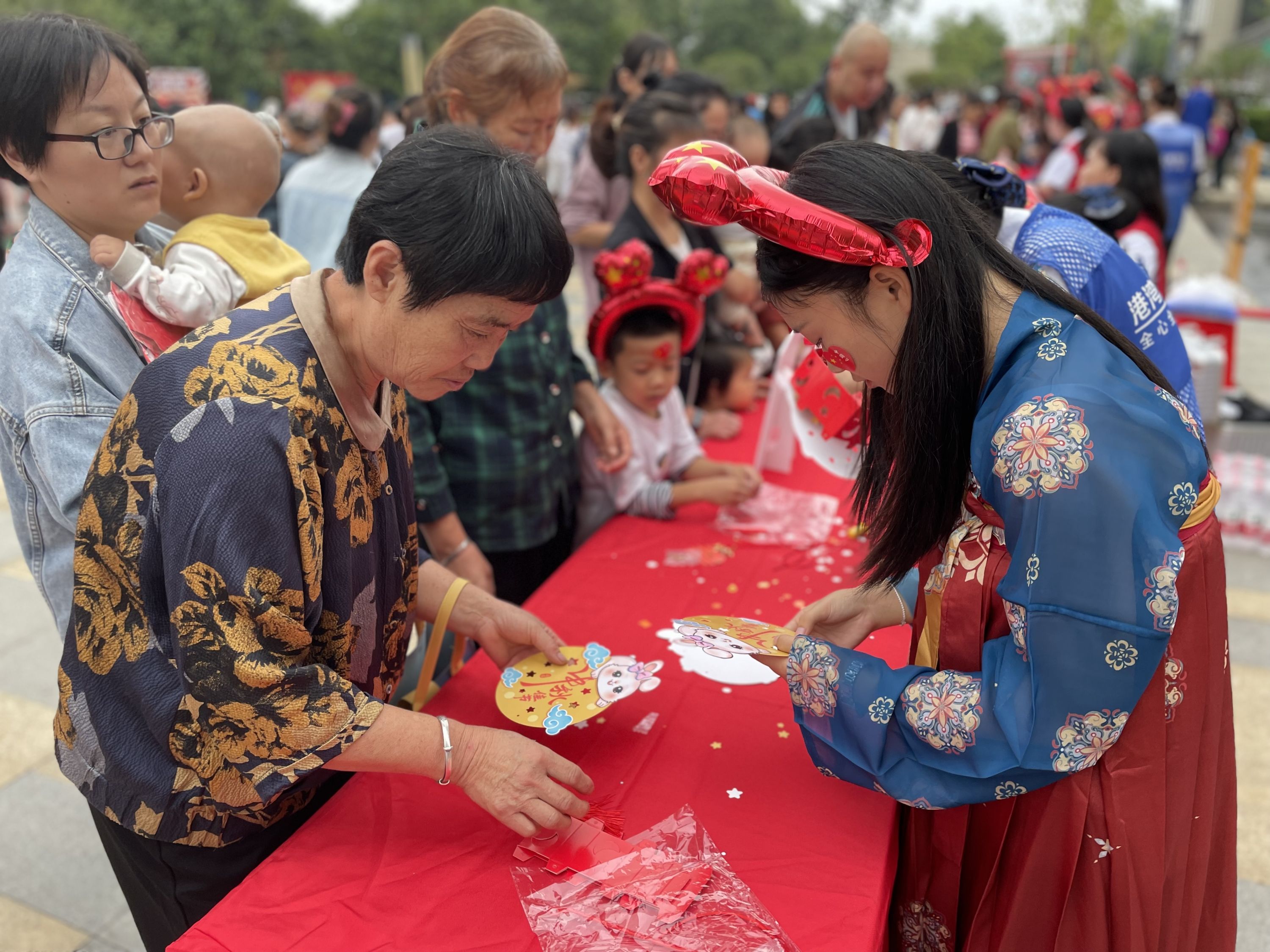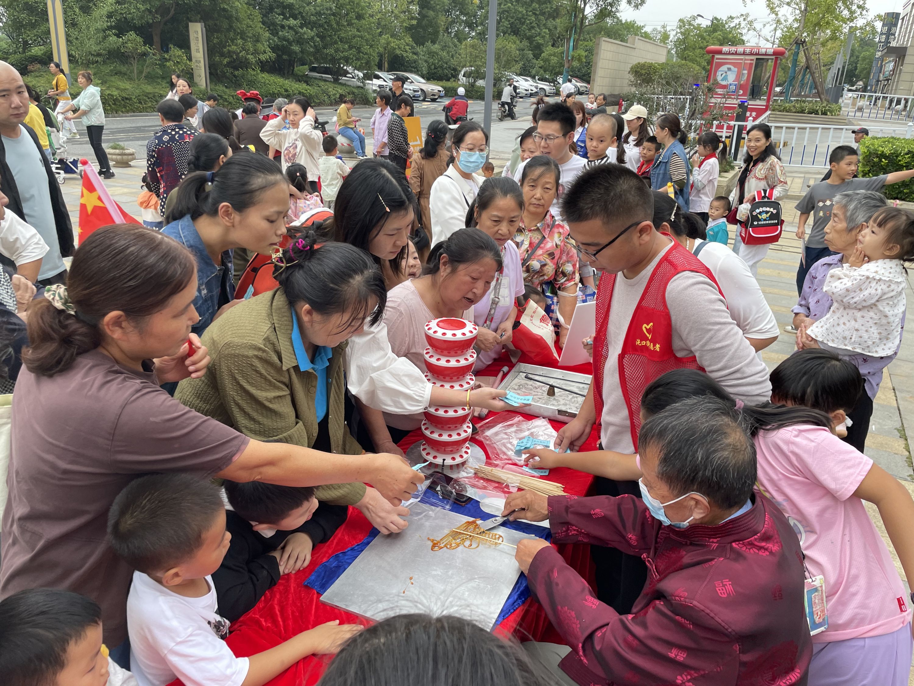 此次活动,设置文艺表演区、非遗手工体验区、美食体验区、游戏互动区、国庆长卷画区等,集民俗、非遗、美食等多种元素于一体,为“赶集”的居民展现着中秋、国庆双节独有的“浪漫”。