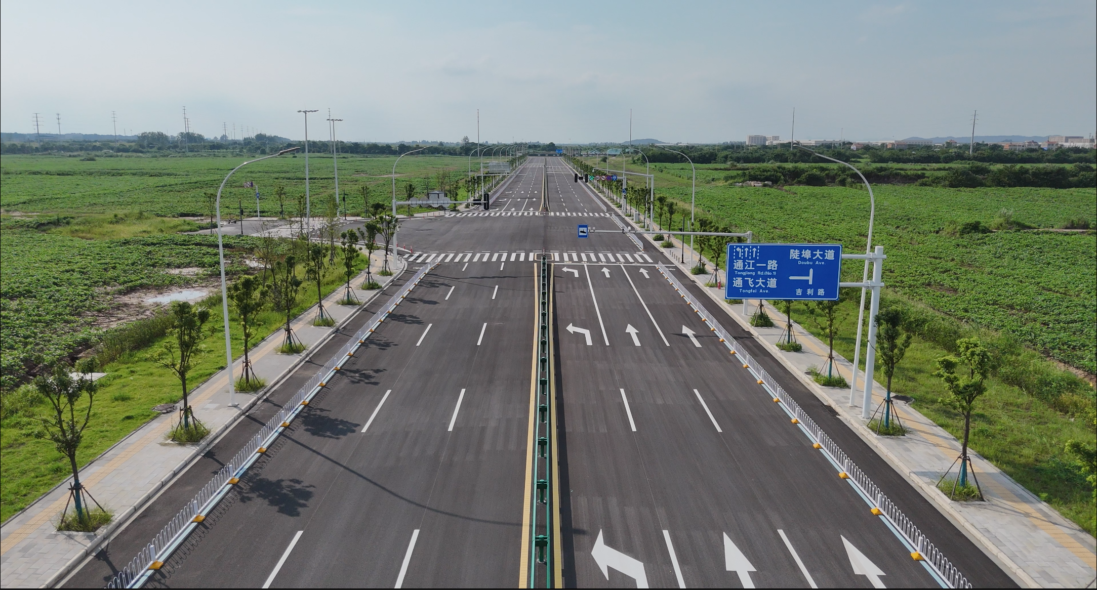 吉利路(江二路)(汉南大道-兴城大道)北起于汉南大道,由北向南与通江一路、通江二路、幸福园路和通江四路交叉后,止于兴城大道,全长3.7公里,按照双向8车道城市主干路标准建设,主要包括道路、给排水、结构、岩土、交通、照明和绿化等工程。