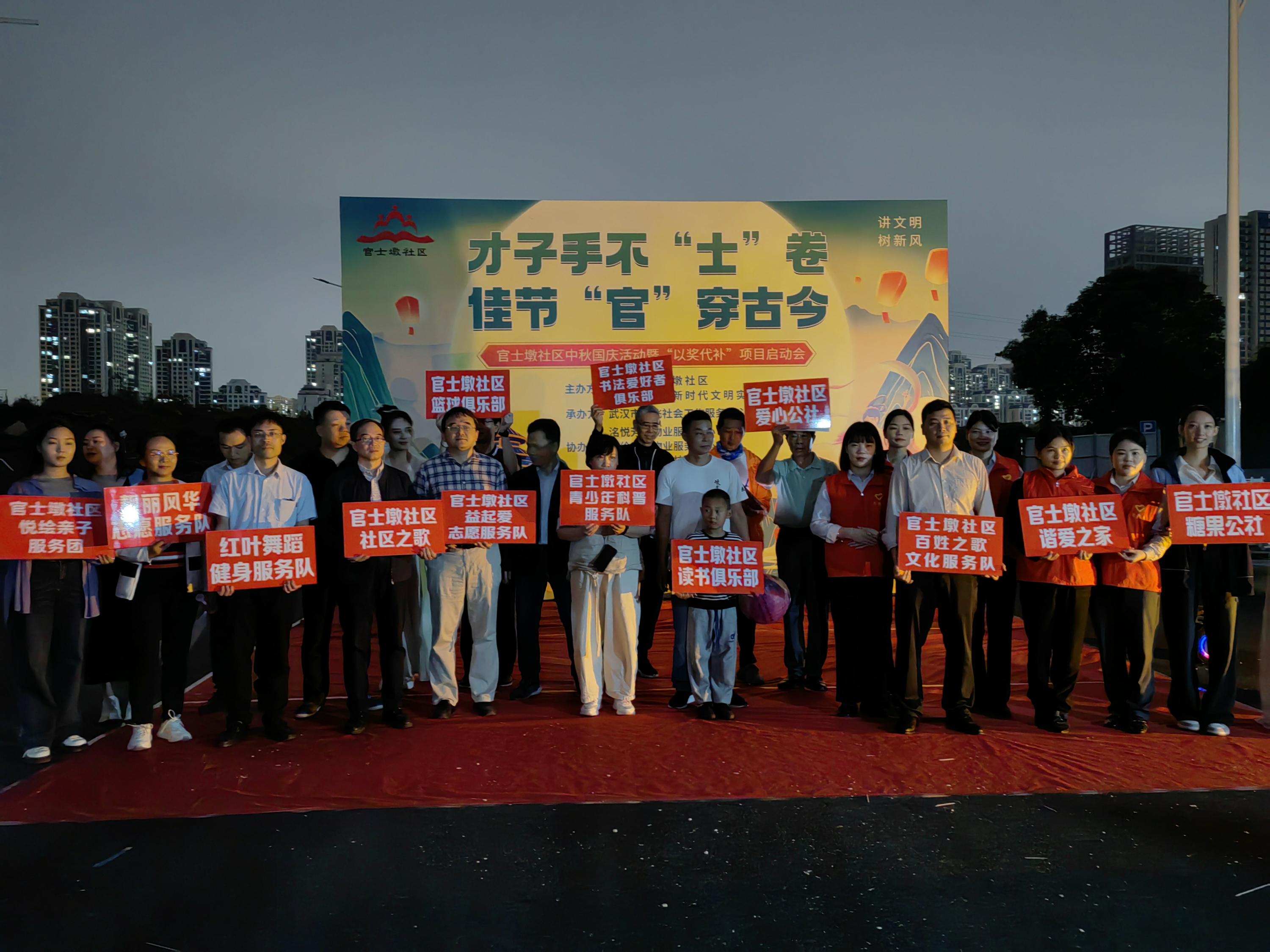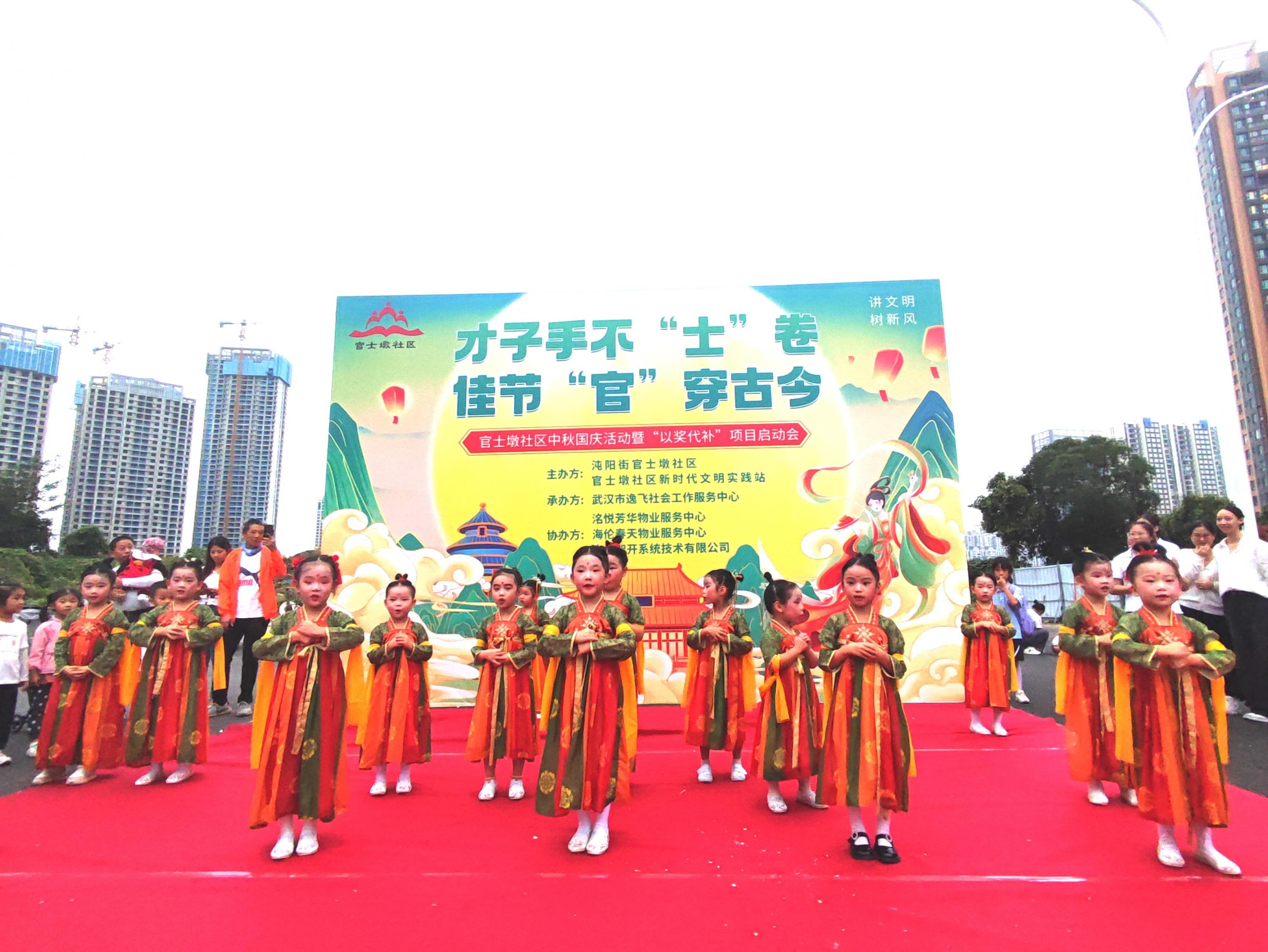 车谷融媒9月27日讯 9月25日,沌阳街道官士墩社区联合武汉市逸飞社会工作服务中心、中电建物业管理有限公司武汉洺悦芳华物业服务中心、武汉海伦堡物业管理有限公司海伦春天物业服务中心,中电智开系统技术有限公司,依托社会工作服务志愿者培育指引“以奖代补”项目,共同举办“才子手不‘士’卷,佳节‘官’穿古今”双节游园会暨“以奖代补”项目启动会。