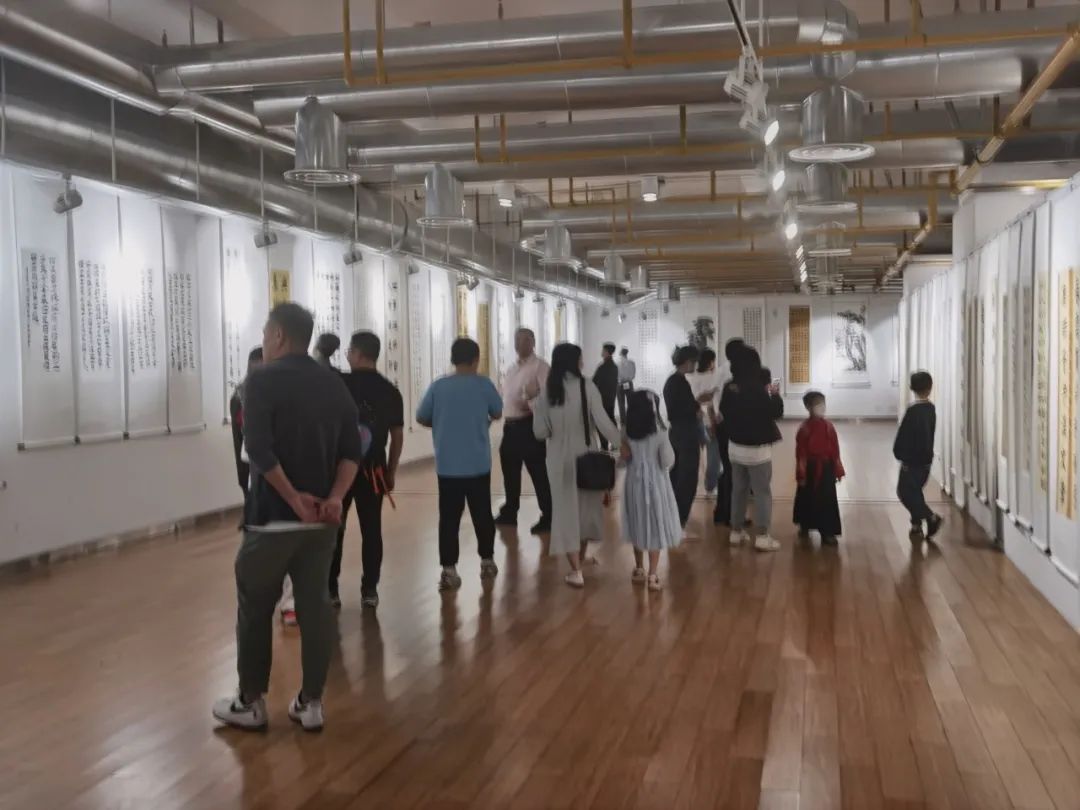 湖北工业大学原宣传部部长、省高校书法家协会副主席杜沛然,湖北工业大学艺术学院副院长、湖北省书法家协会理事周承君,以及工委宣传部相关负责人、部分师生及家长和区书画爱好者约100人参加开幕式。