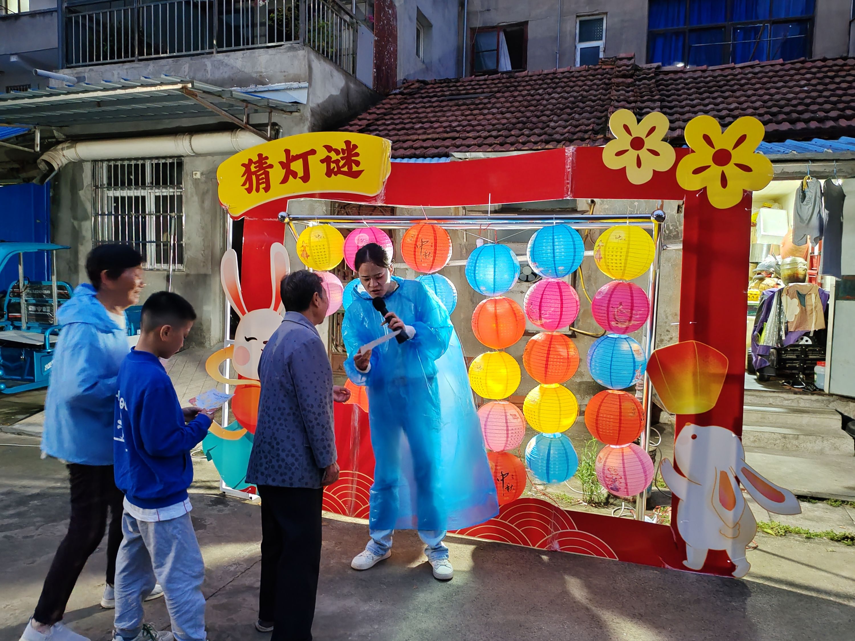 除了趣味的运动项目,现场还竖立起一面“灯笼墙”,仔细一看灯笼上面还悬挂着一张张灯谜。灯谜的内容既贴近生活,又充满文化色彩,生动有趣,兼具娱乐性和知识性。居民们三五成群争先恐后地看谜面、猜谜语。