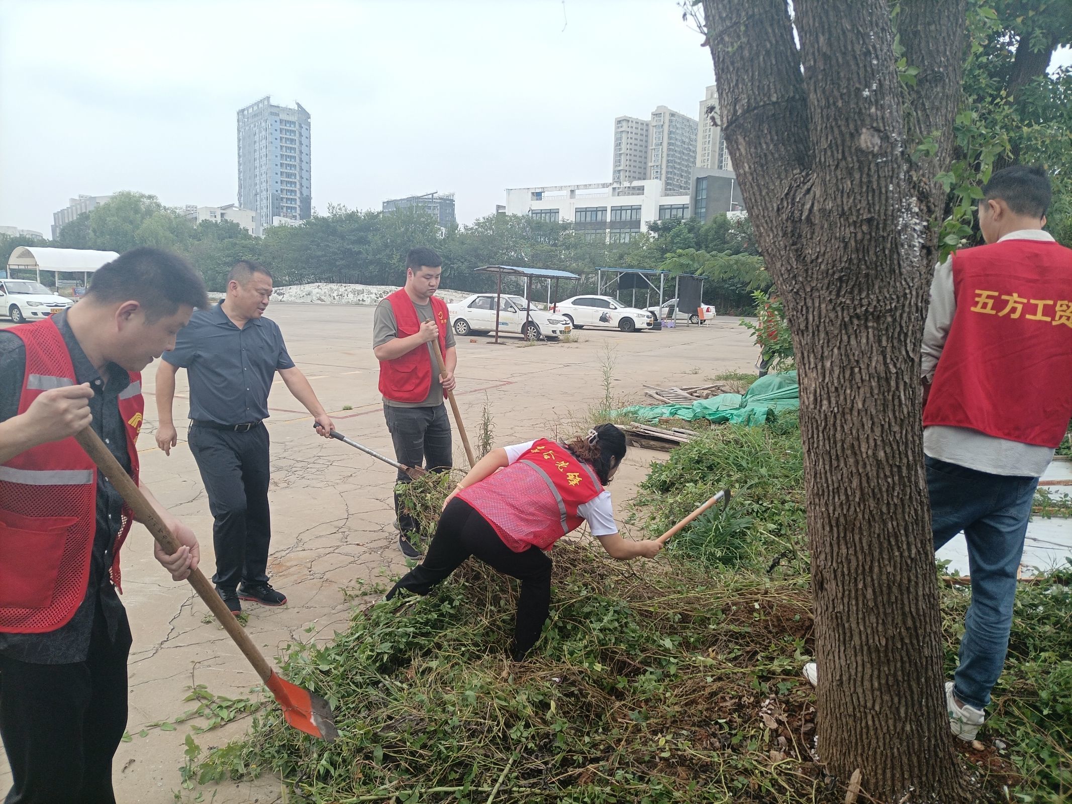 车谷融媒9月29日讯 9月27日,沌阳街道五方工贸公司在辖区公寓楼开展节前“清除杂草、美化环境”整治活动。
