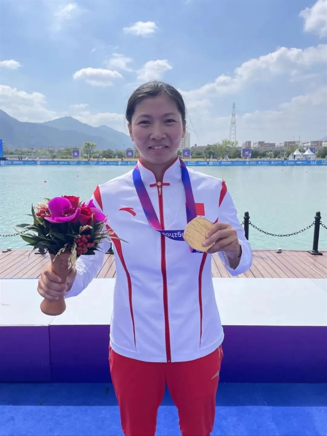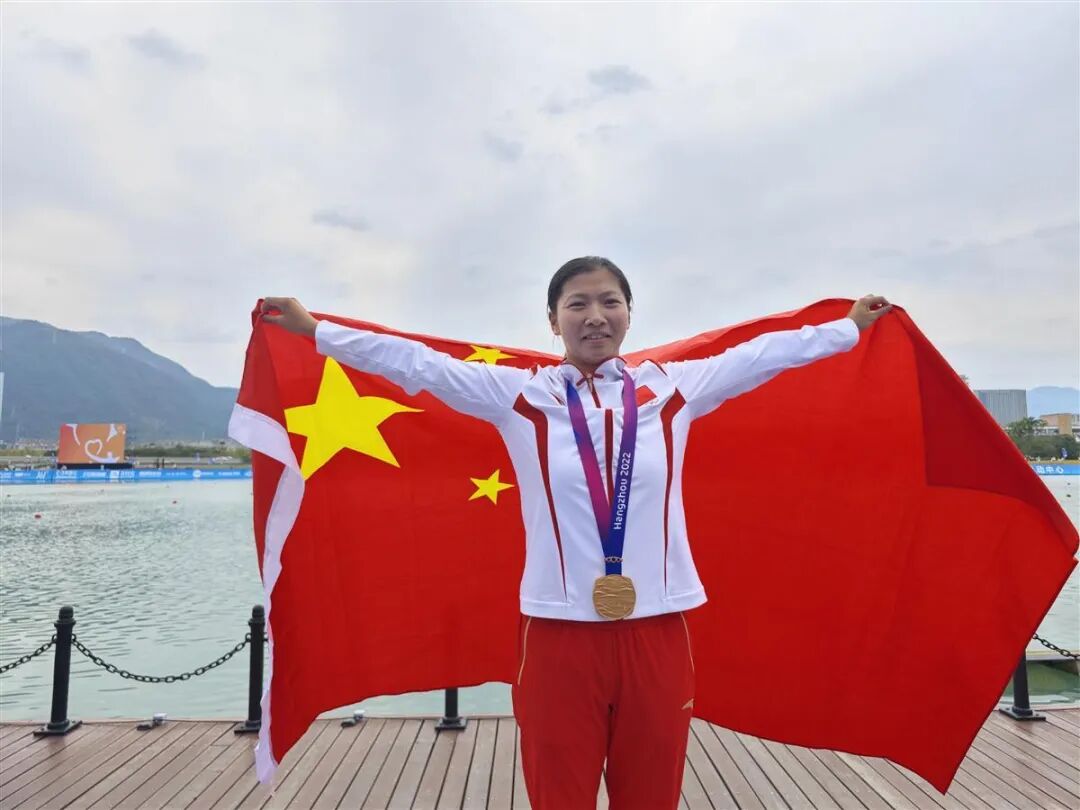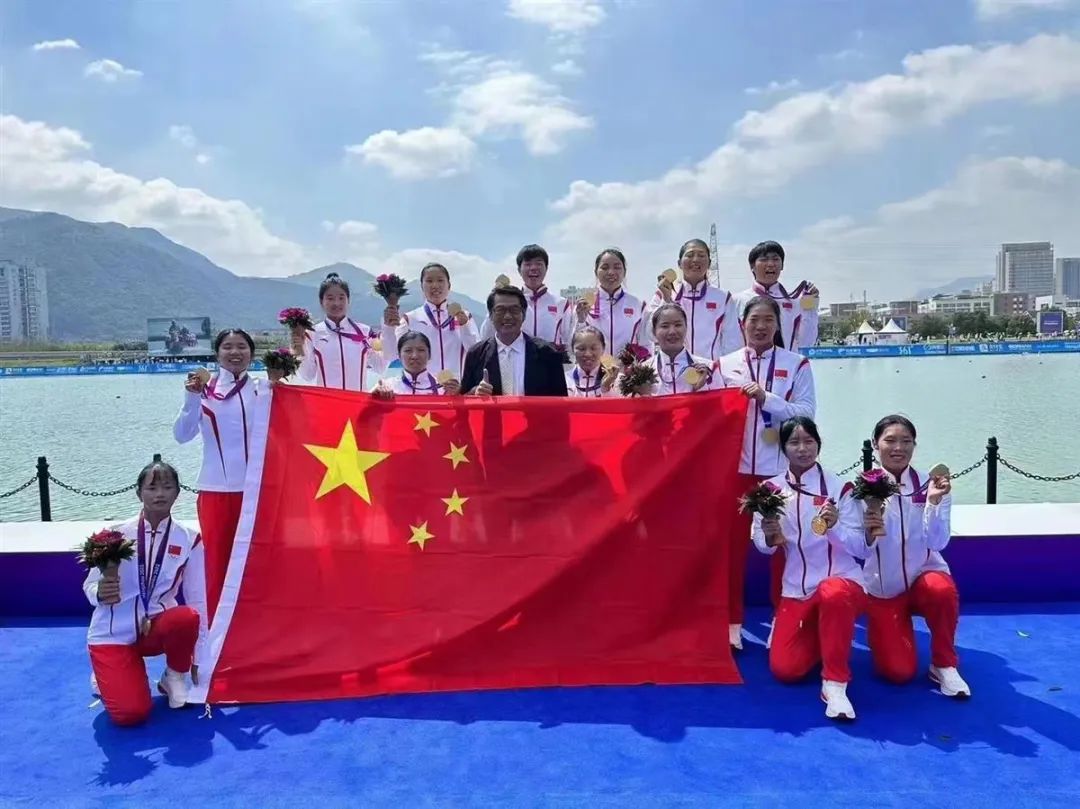 同日,在女子龙舟比赛1000米决赛中,史莹莹同学和队友凭借过硬的技术战术和过人的胆量智慧,第三次为中国女子龙舟队夺得金牌,这也是江大学子获得的第五金。