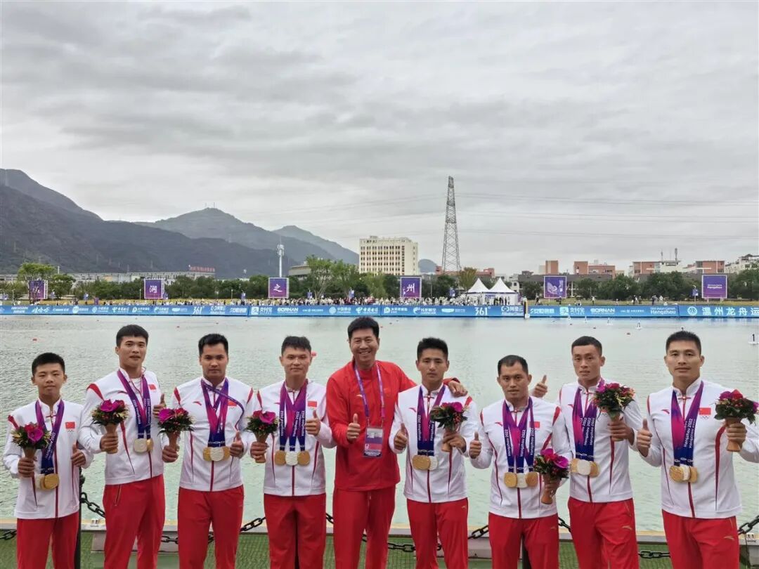 10月4日,在龙舟男子200米直道竞速赛决赛中,张志成、舒亮与队友密切配合、顽强拼搏,以48.464的优异成绩,为中国队夺得金牌。这是杭州亚运会龙舟项目产生的首枚金牌。