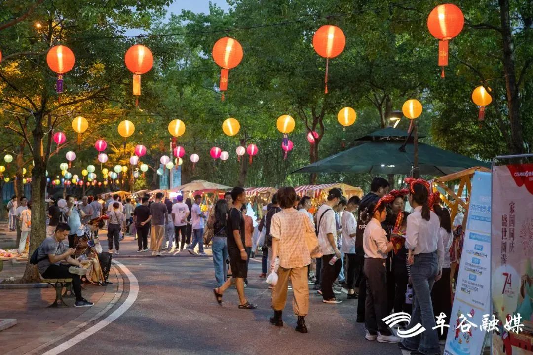车谷融媒10月8日讯 逛商场的同时看国风展、在足球公园看动漫展、逛Moon市集,今年中秋、国庆“双节”期间,武汉经开区各大商超、文旅企业推出了丰富多彩的活动,促进市民消费。