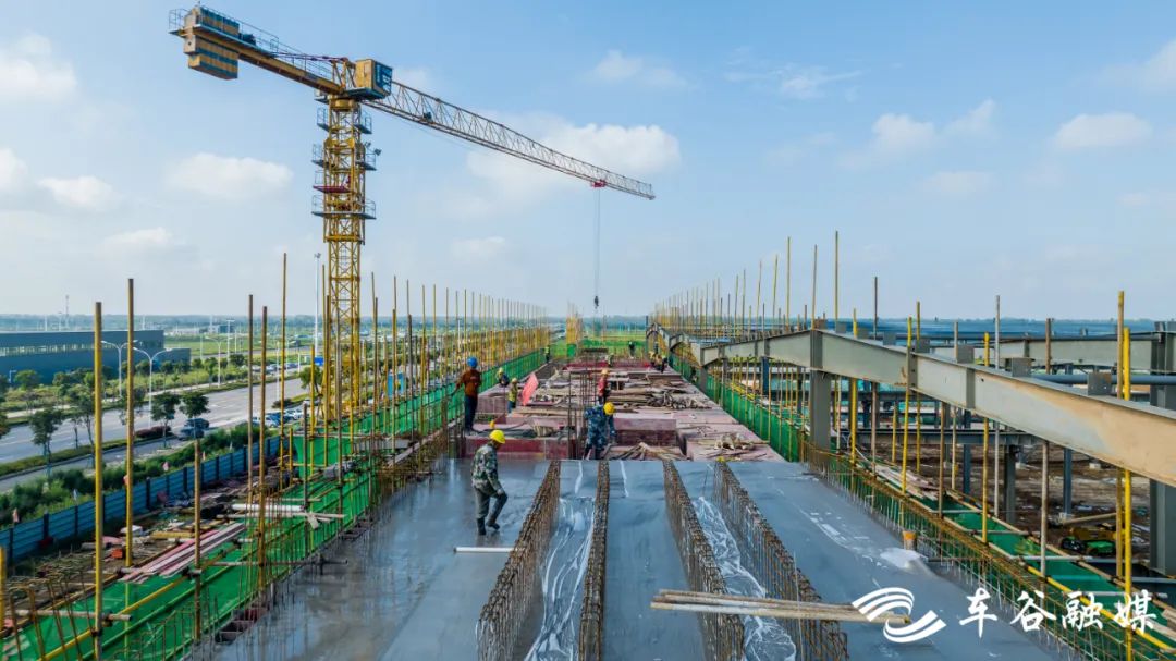车谷融媒10月9日讯 10月8日上午,位于武汉经开区的博雷顿管理总部及新能源工程车生产基地(以下简称“基地”)伴随着机械轰鸣声,基地主厂房的钢结构主体完成施工,其办公楼也即将在本月中旬迎来封顶。