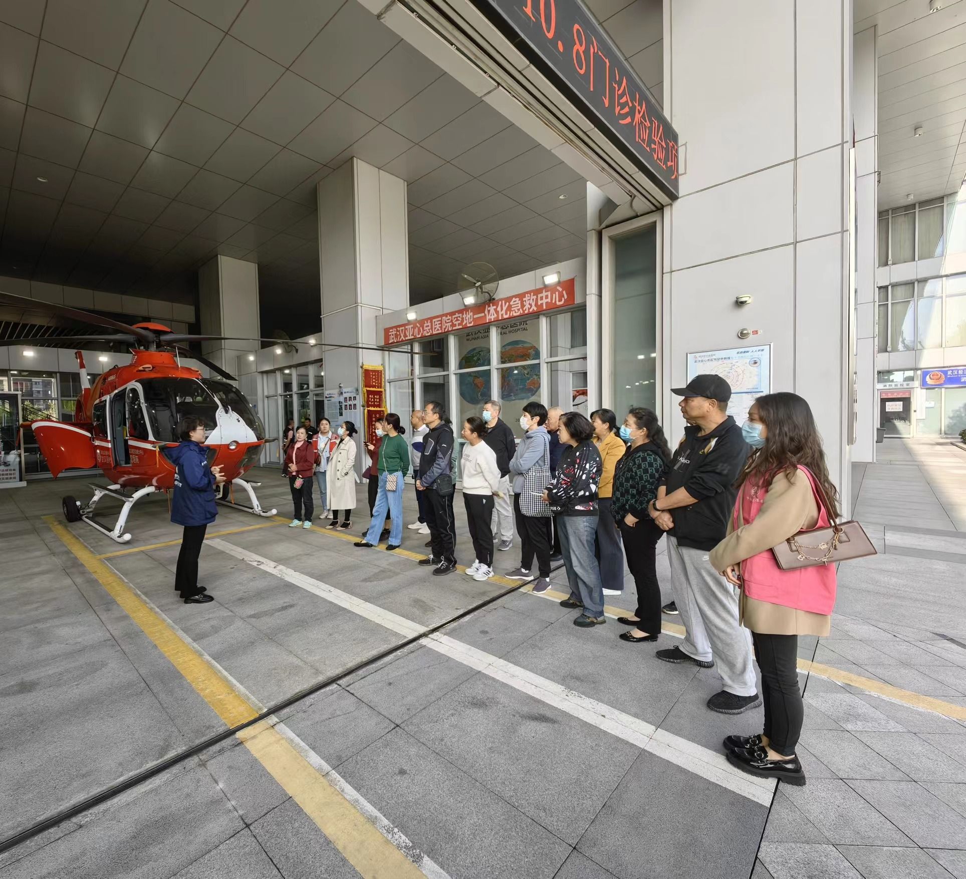 活动中,居民们参观了空中救援直升机,学习了急救和心血管疾病防治科普知识。