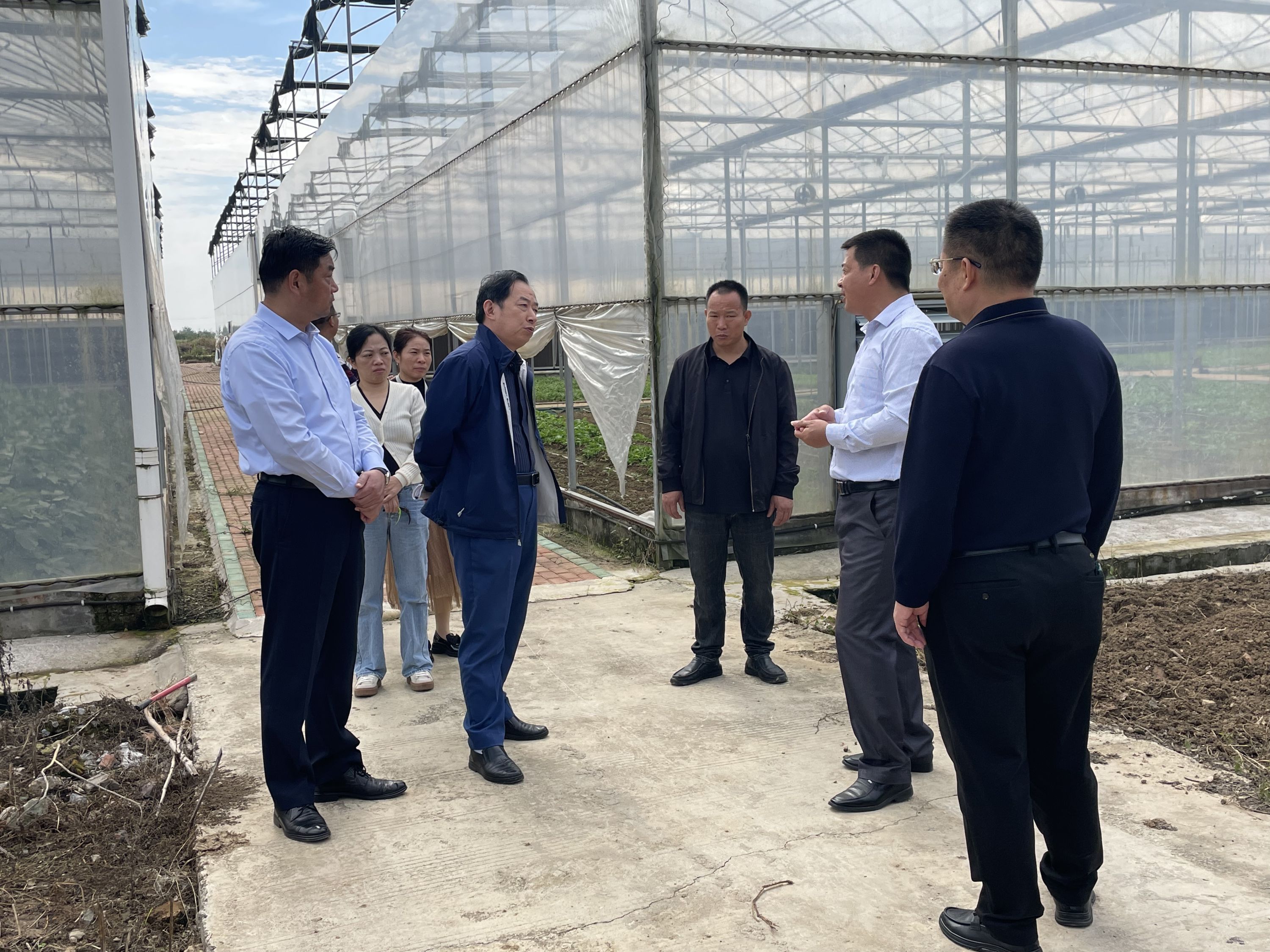 陈明权一行来到汉江村土地流转经营户湖北永铭胜景生态农业发展有限公司种植基地,详细了解各类农产品的种植与产销,基础设施、种植技术、产业发展等方面情况。