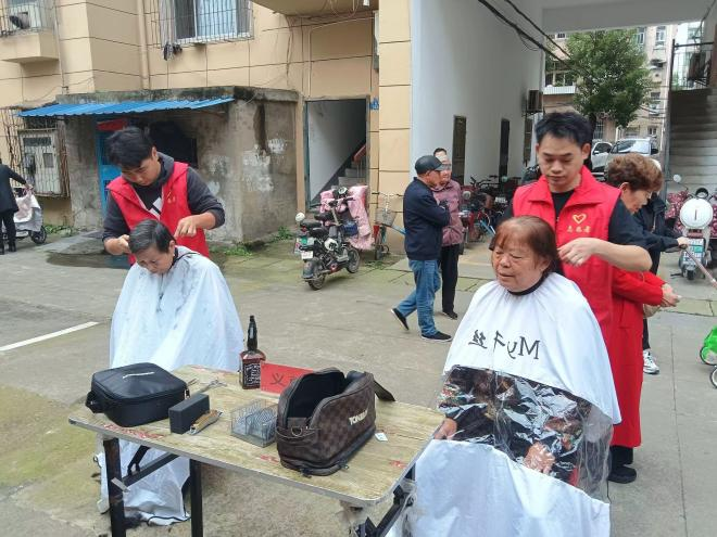 在义剪区,理发志愿者动作娴熟,一边剪发,一边亲切地与居民唠家常。“剪了头发,整个人都有精气神了,平常是等儿子有空接我去剪,今天在家门口就剪了,蛮方便。”今年90岁的张奶奶满意地说。