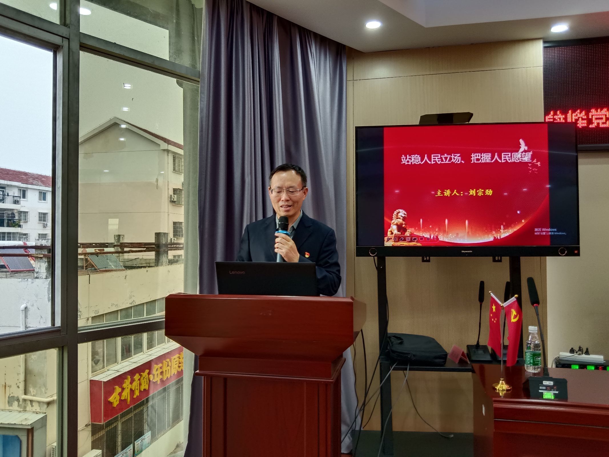 此次主题党日活动,邀请武汉商学院马克思主义学院副院长刘宗劲讲授专题党课《站稳人民立场,把握人民愿望》。