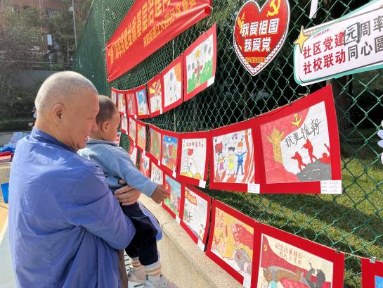 将美展示在社区惠民服务中的点点滴滴,活动现场还展示了“四点半课堂”的20多副小朋友们的童真创作,专业的下沉党员用心指导孩子们用手中的画笔勾勒出多彩的画面。有的画着对革命先辈的崇敬感恩,有的画着自己的幸福生活,有的画着小区的游玩掠影……她们用善于发现的眼睛去展现美,创造美。