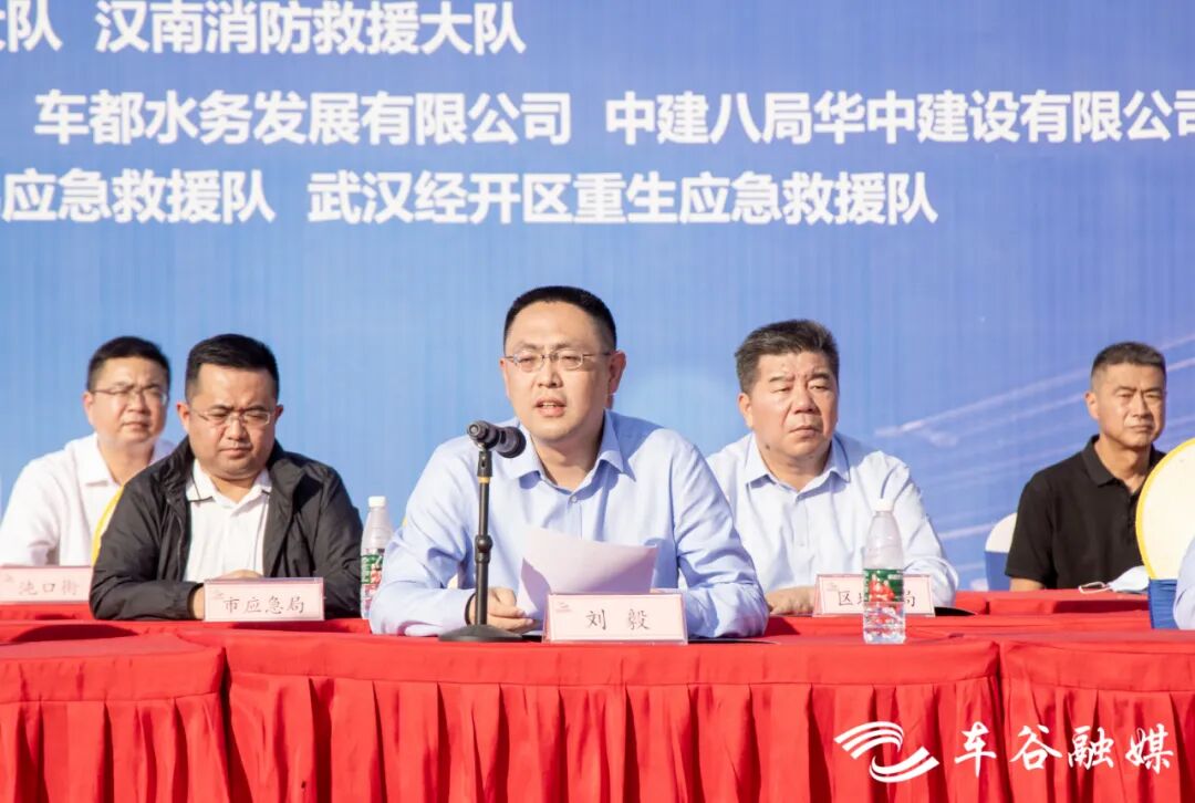 武汉经开区工委副书记、管委会主任唐超,湖北省应急救援中心副主任刘毅,武汉市应急管理局一级调研员、市应急指挥中心主任周全进出席活动并观摩演练。