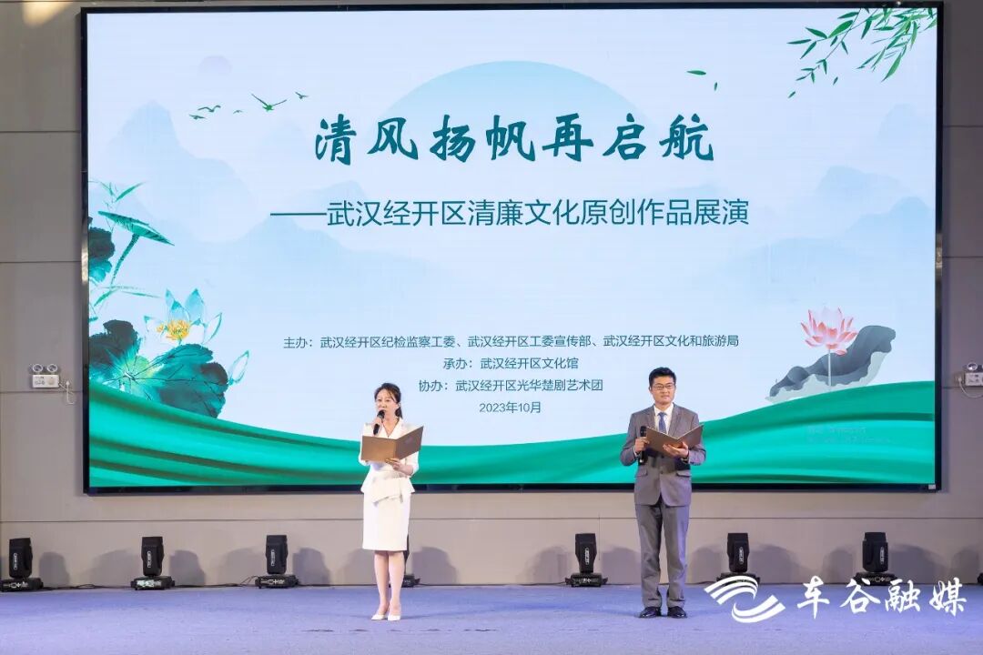 车谷融媒10月19日讯 10月17日,“清风扬帆再启航”清廉文化原创作品展演在武汉经开区文化馆举行,全区近百名党员干部齐聚一堂,共品清风廉韵,共谱清廉新篇。