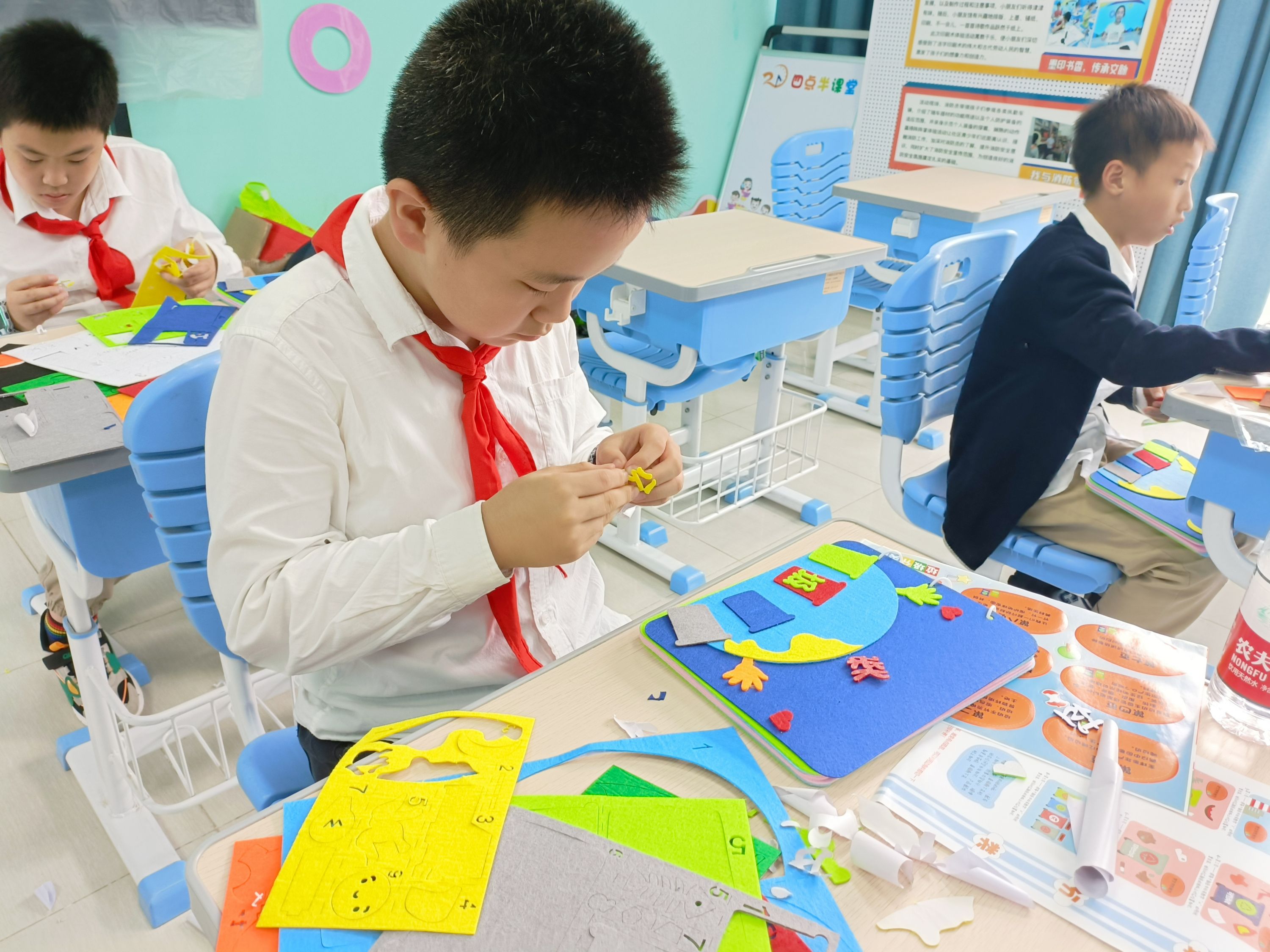 活动中,工作人员为小朋友们分发绘本制作材料,并讲解绘本制作的方法和步骤。小朋友听了工作人员的讲解,迫不及待地开始制作起了贴画绘本。看着一片片零碎的布料经过认真细致地拼贴、组装,最终一本本垃圾分类主题绘本跃然而出,大家的脸上挂满了满满的成就感。