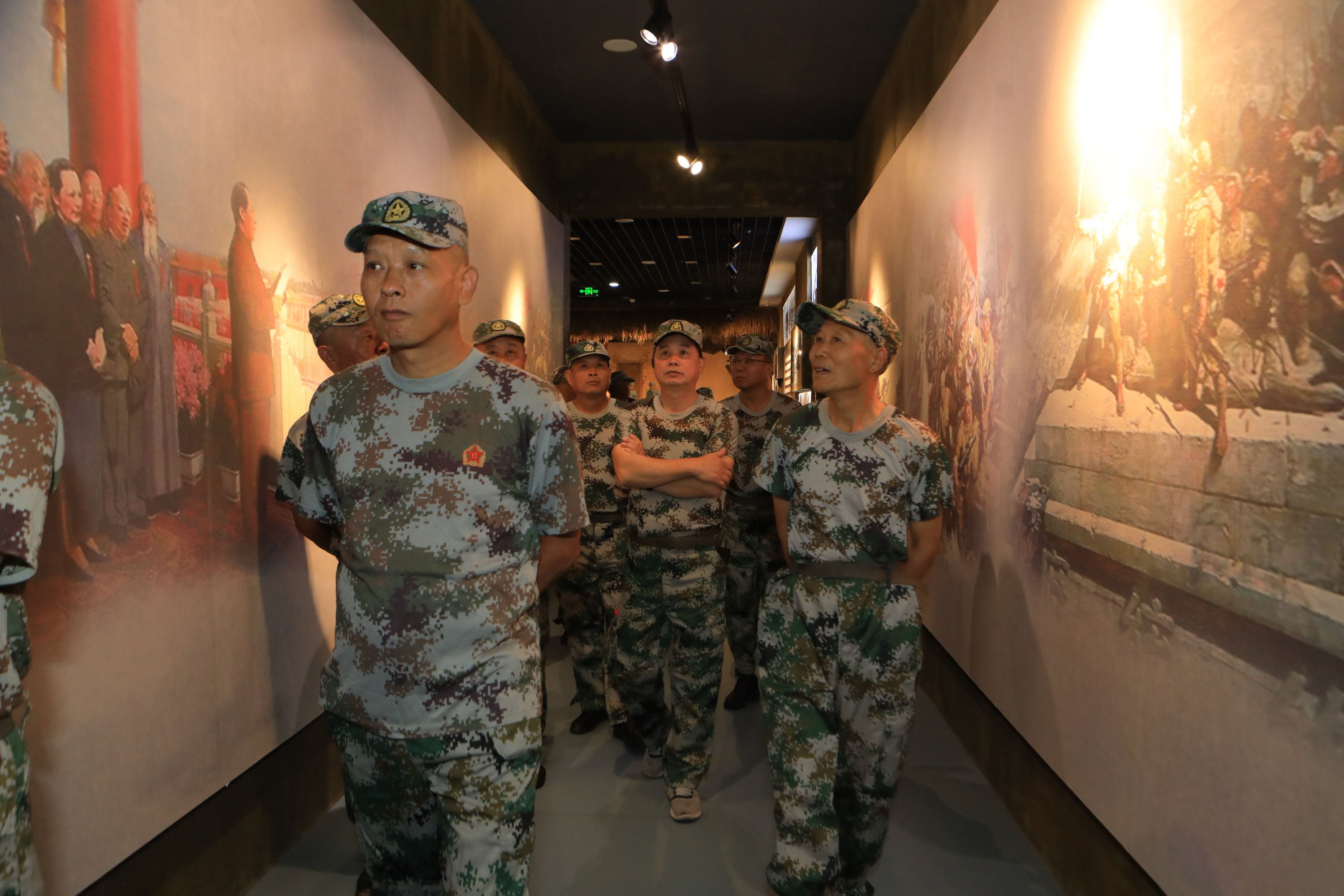早晨8时,退伍军人在纱帽街道退役军人服务站集合完毕,统一乘车到达指定地点,火速换好军装,列队完毕,步伐一致,跟随园区讲解员进行参观学习。讲解前,由退伍老兵常大庆领誓,重温军人誓词。各位老兵驻足在各种武器装备模型之间,感叹着祖国的迅速发展及国防力量的强盛。在参观侏儒山战役纪念馆时,老兵们相继回忆起了当初的峥嵘岁月,意犹未尽。