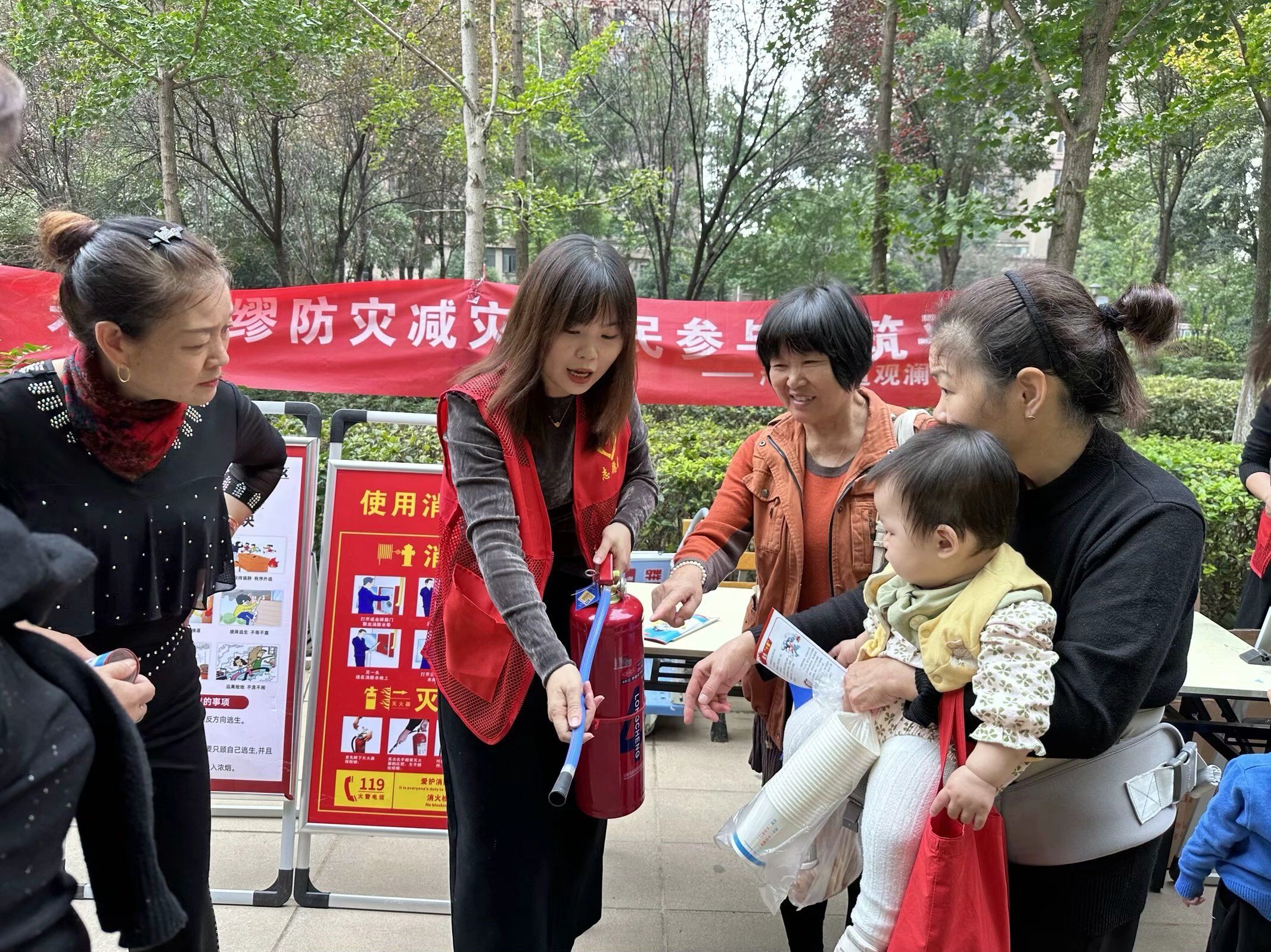 活动现场,社区工作人员准备了防灾减灾知识宣传折页、图文并茂的宣传展架、简洁明了的标语横幅,工作人员通过分发宣传资料、面对面讲解安全知识、趣味问答赠送小礼品等多种方式向居民宣传介绍各类突发灾害事件的种类、特点和危害,普及防灾减灾救灾的基本技能和应急常识,并现场拿出灭火器教大家如何正确使用。