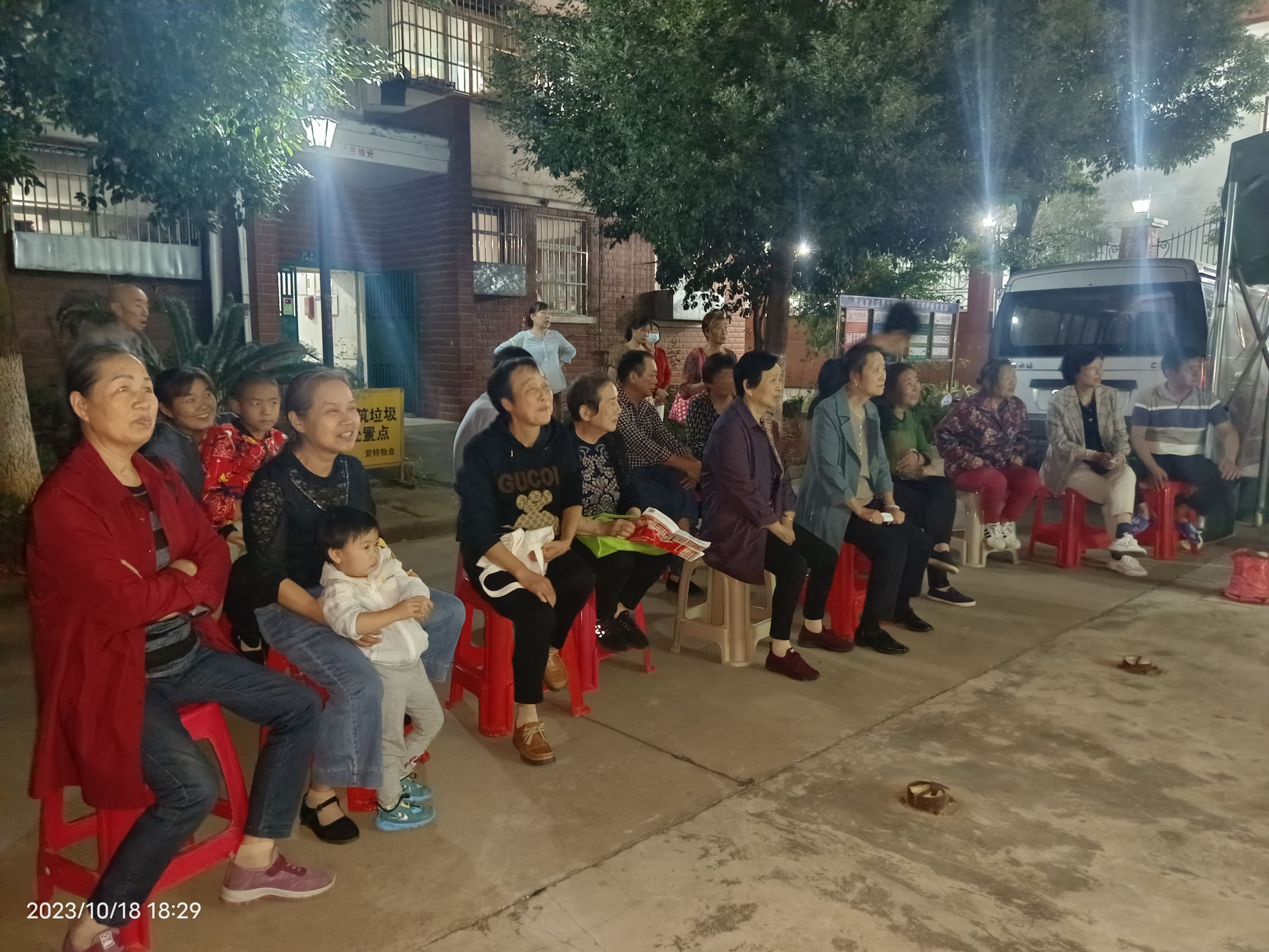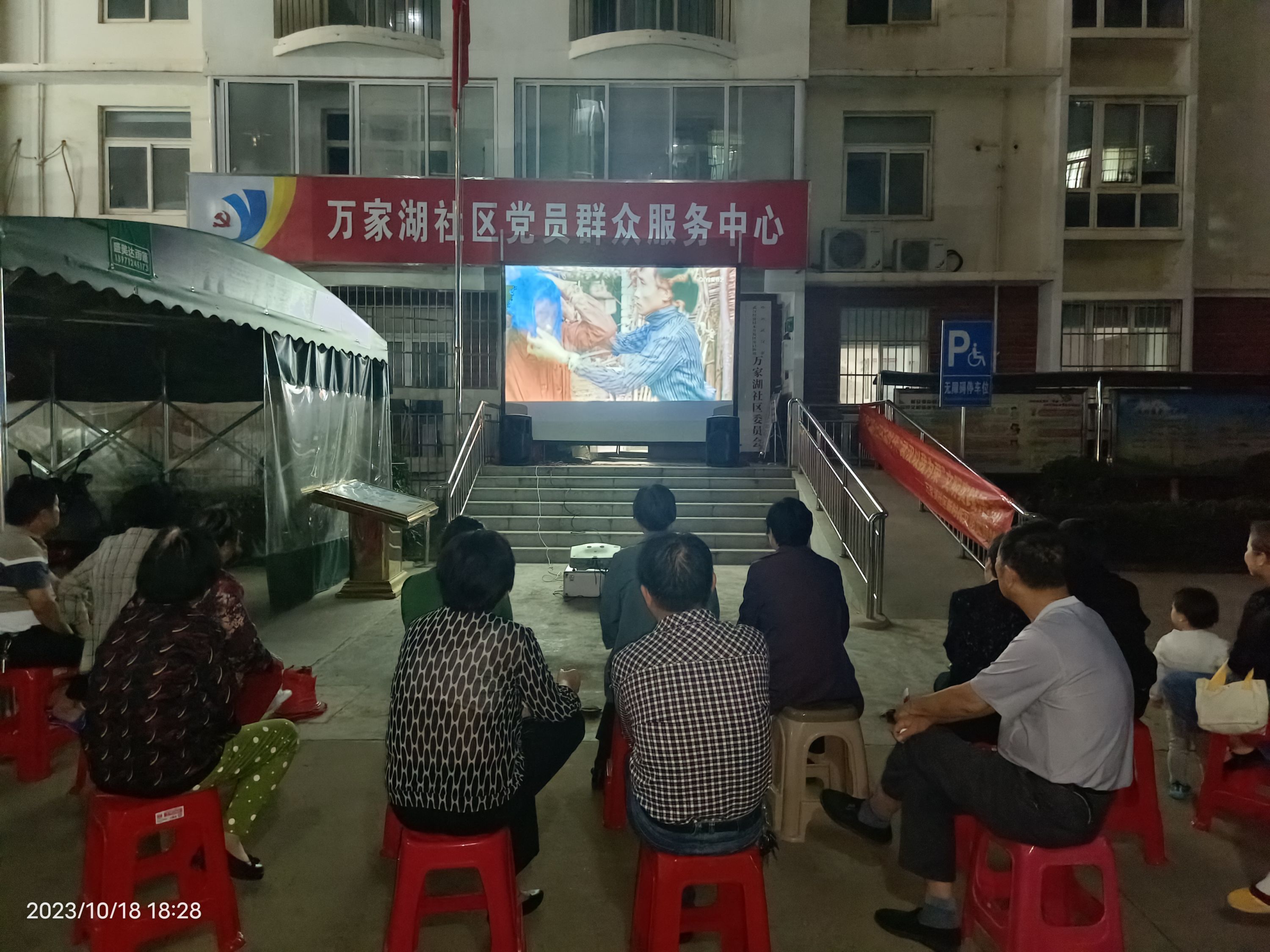 10月18日,沌口街道万家湖社区新时代文明实践站联合车都外校城项目部,开展“露天电影进社区,清风阵阵拂万家”志愿服务活动,吸引不少居民踊跃参与。