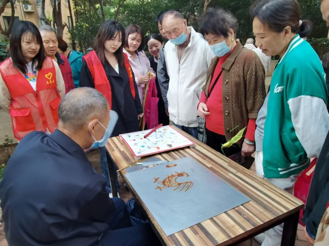 10月20日,沌口街道观澜社区的老人们在传统文化中度过了一个不一样的重阳节。活动现场,非遗手工草编、糖画,投壶等项目集中亮相,糖画师傅巧手一挥一转,一个个形态各异的“神兽”纷纷出炉;编织老师向大家讲解编织技巧、制作特点,引来不少居民驻足观看。
