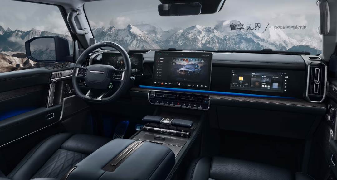 和霸气的外观相反,猛士917的内饰设计特别人性化,特别是极具设计感的换挡拨杆,当拨动挡位时,显示器就会呈现出旋转的动画,就像机械手表一样。