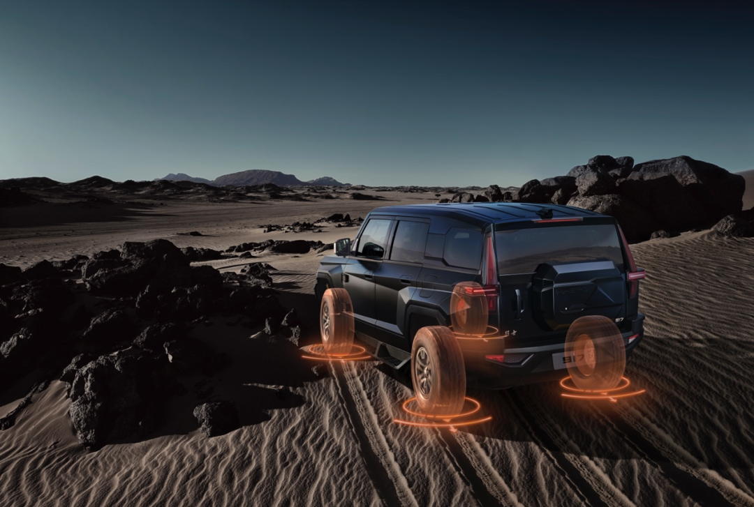 以动力输出为例,为实现1000马力、零百加速4.2秒的规划,工程师们创造性地在纯电电驱动里加入了差速锁,它能更细腻地调整每个车轮的动力输出,让车辆在复杂越野路况下具有绝佳适应性。而为了赋予车辆更好的感知系统,MORV平台自主研发了多种控制器,如将双目摄像头引入越野工况,与红外夜视进行融合处理,使猛士917能自动识别雪地、草地、砂石、泥地、岩石等9种复杂地形。