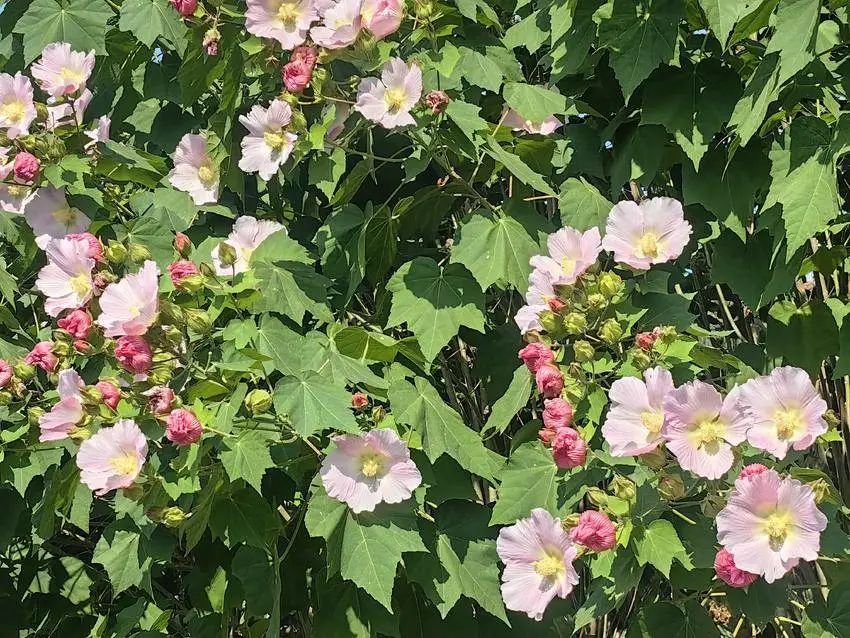 木芙蓉有重瓣者,叫醉酒芙蓉,花色一日三变,清晨初开时是洁白或淡红,午后转为粉红色,傍晚花朵快闭合时,颜色呈深红色。古人称木芙蓉为“酒醉芙蓉”或者“三醉花”,意指芙蓉花如醉酒佳人的面庞一般美丽。这样的特征其实是因花瓣含有花青素,花青素的浓度和酸碱度会随着温度变化而变化。