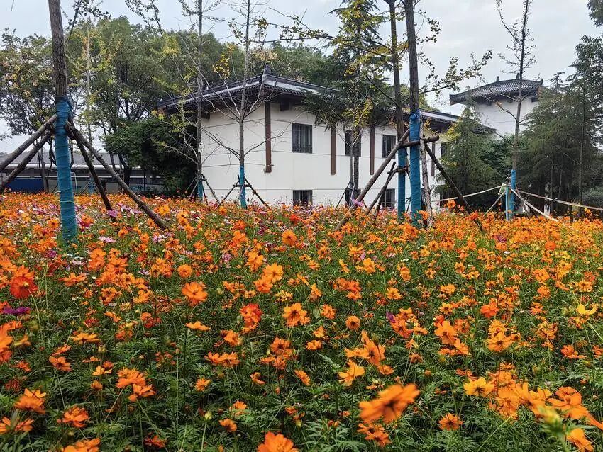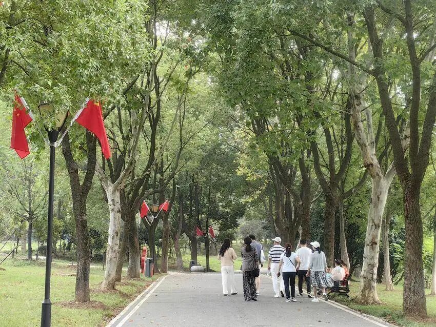 近期,武汉经开区汤湖公园内的木芙蓉、硫华菊、波斯菊盛开,伴着公园国庆期间摆放的一串红、鸡冠花、孔雀草、彩叶草等时令草花,以及沿路的五星红旗迎风飘扬,熠熠生辉,光彩照人。公园内一片片已经开始被秋霜染红或染黄了的乌桕、枫香、银杏、栾树在向人们传达着阵阵秋意。