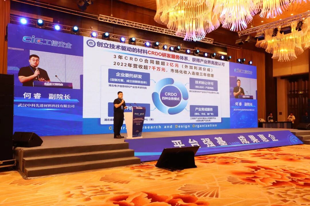 大会上,武汉先进院副院长何睿博士介绍,CRDO(Contract Research and Design Organization)即是以合同的形式为新材料企业、科研院所等机构提供成果中试熟化、工程化设计、应用拓展等方面专业化外包服务的机构。“从行业龙头到中小企业,武汉先进院已经服务企业50多家,为企业创造新增产值五十亿元,CRDO合同额超2亿元,市场化收入连续三年倍增,CRDO研发服务模式收获了产业界的高度认可。”