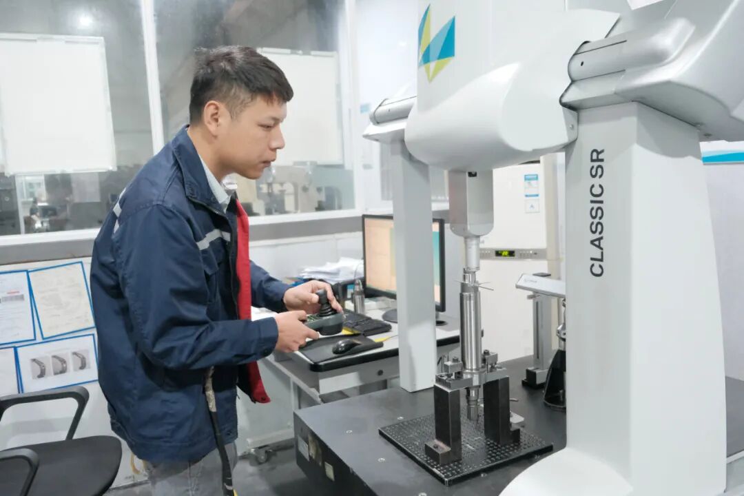 ▲武汉楚凯工作人员正在用三坐标设备做产品测试。