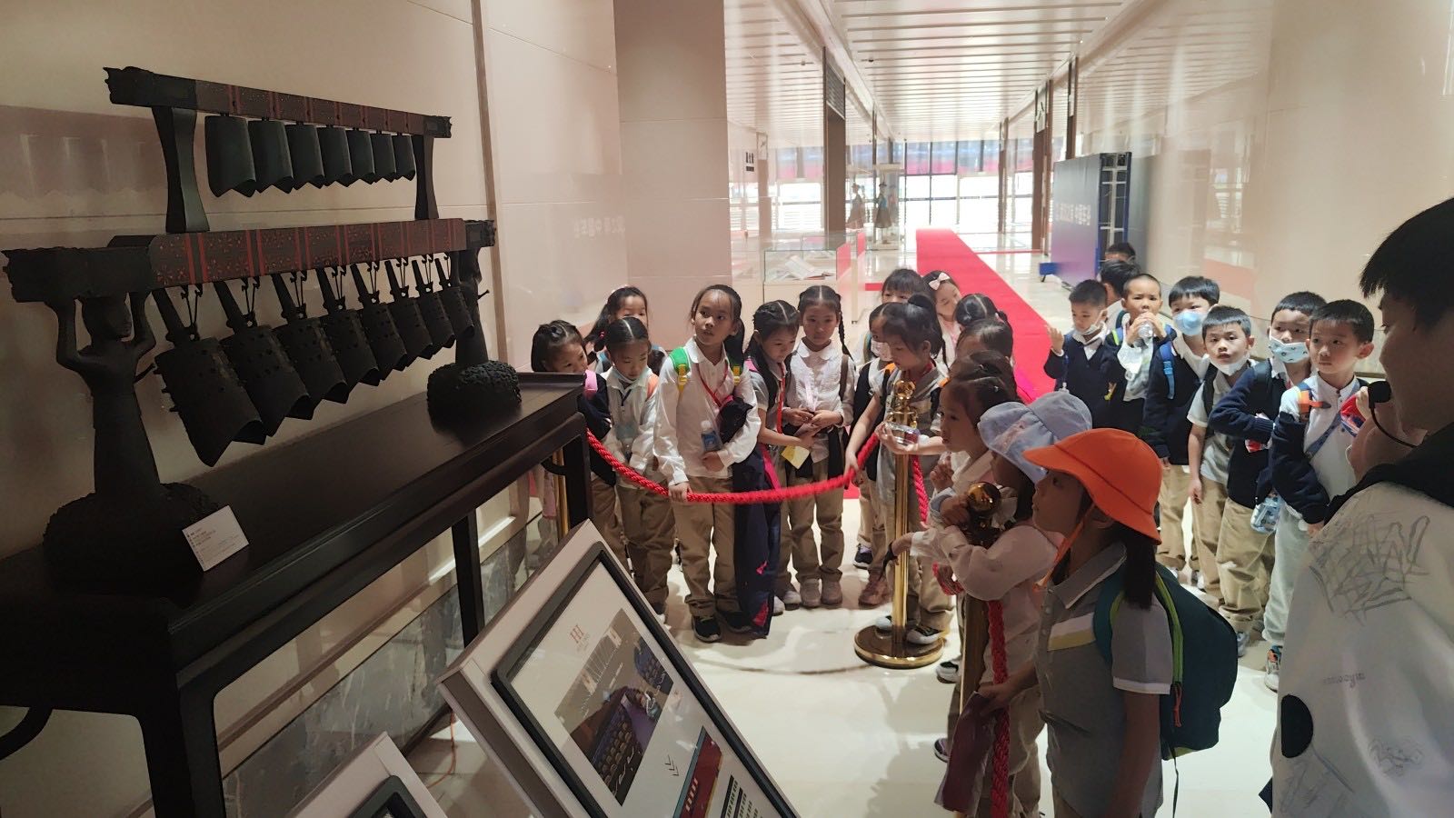 “大家看,这是第七届世界军人运动会的金牌,有哪位小朋友知道武汉军运会时中国队获得了多少枚金牌?”在讲解老师的带领下,孩子们走进中国车谷国际体育文化交流中心,参观军运主题国画《巍巍长城》、浮雕《沁园春·雪》等艺术作品和军运火炬、徽章、奖牌等展陈品,了解中国体育发展史、中国运动健儿摘金夺银背后的故事,近距离感受军运文化。