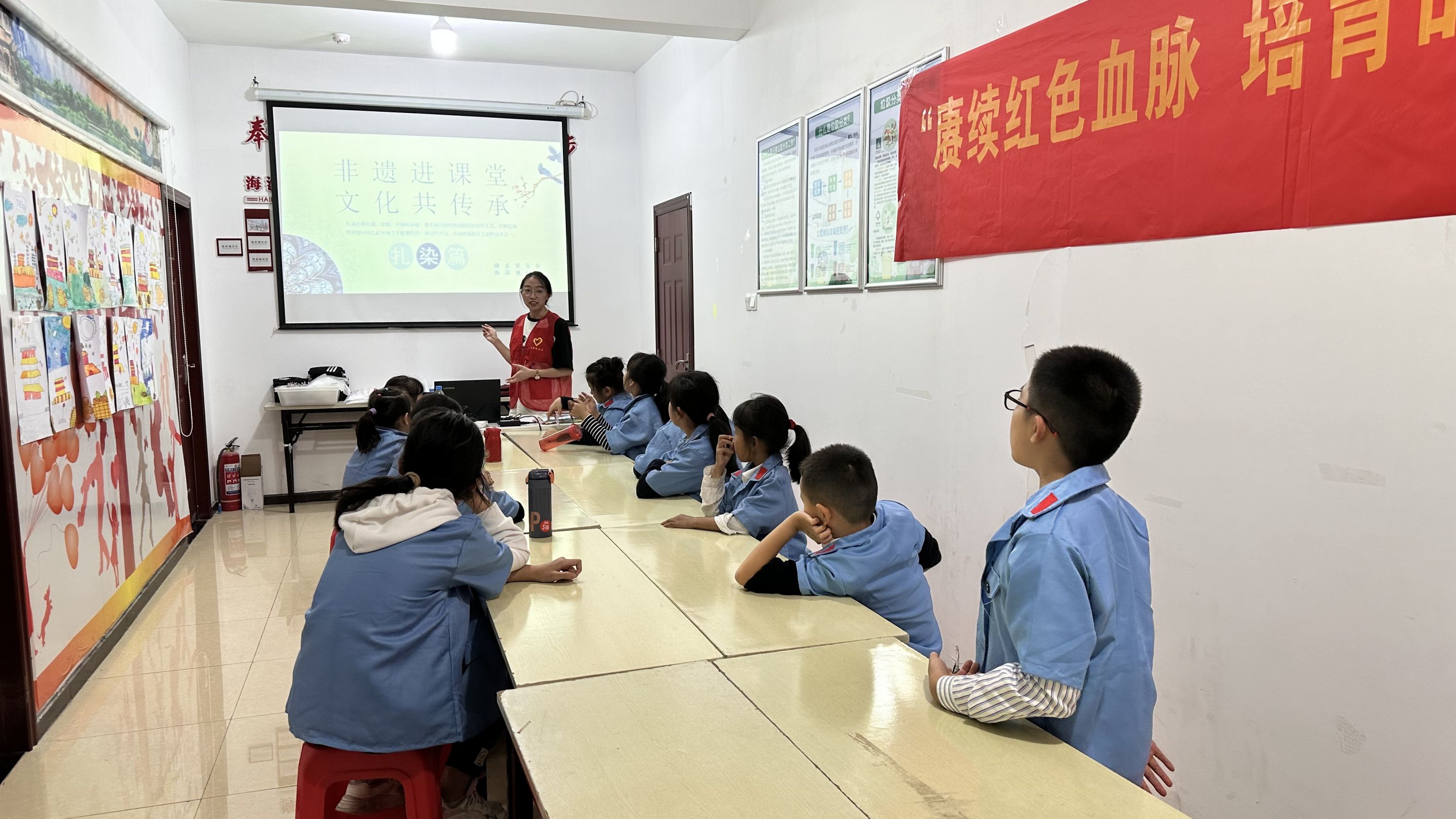 活动中,老师结合讲故事和图片展示,向同学们讲授扎染的历史和文化背景。