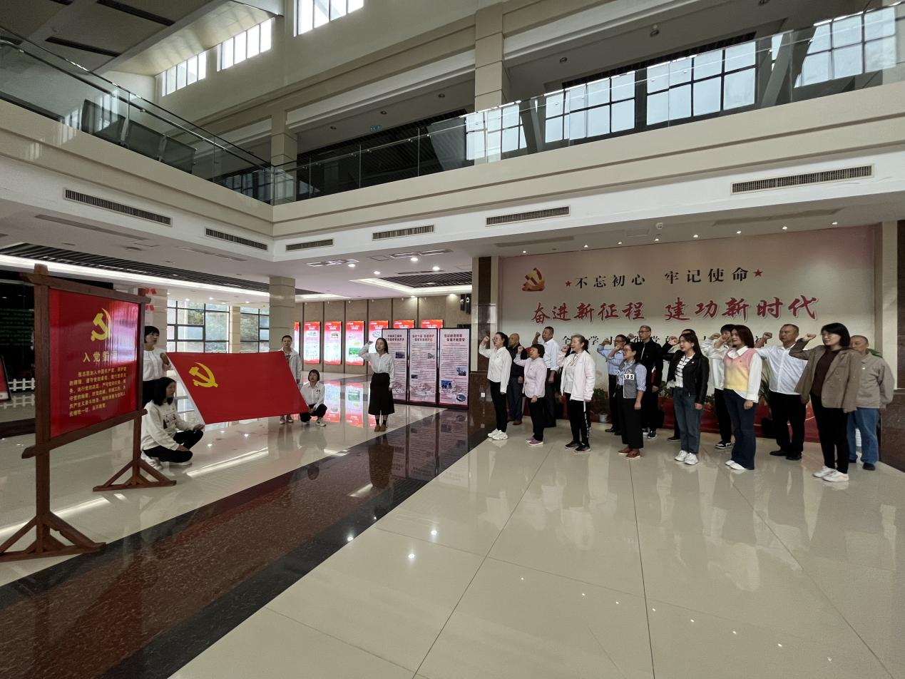 在园内,党员们排着整齐的队伍认真参观基地内陈列的多种武器实物装备,近距离感受着祖国强有力的国防军事力量,有序地进入展馆大厅,在庄严的党旗下,大家重温入党誓词,进一步坚定信念、牢记使命。