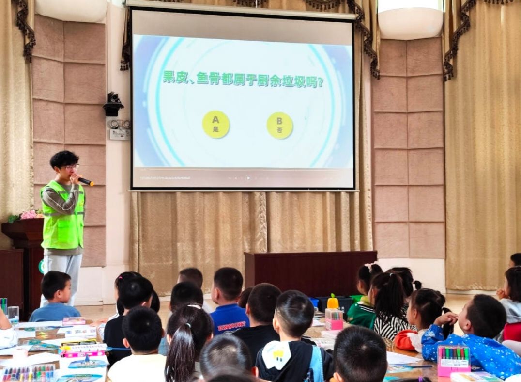 小小设计师活动中,学生们发挥想象力,手握五彩斑斓的画笔,用童心妙笔将垃圾分类、保护家园的美好愿景描绘在画纸上。