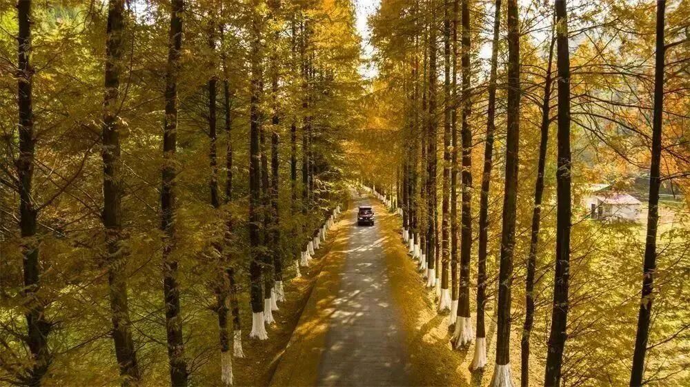 “水杉隧道”四季皆景,各不相同:春有枝叶舒展,夏有羽叶飘逸;由秋至冬,苍翠的水杉披上红装,完成青涩到绯红的蜕变,别有一番风情。
