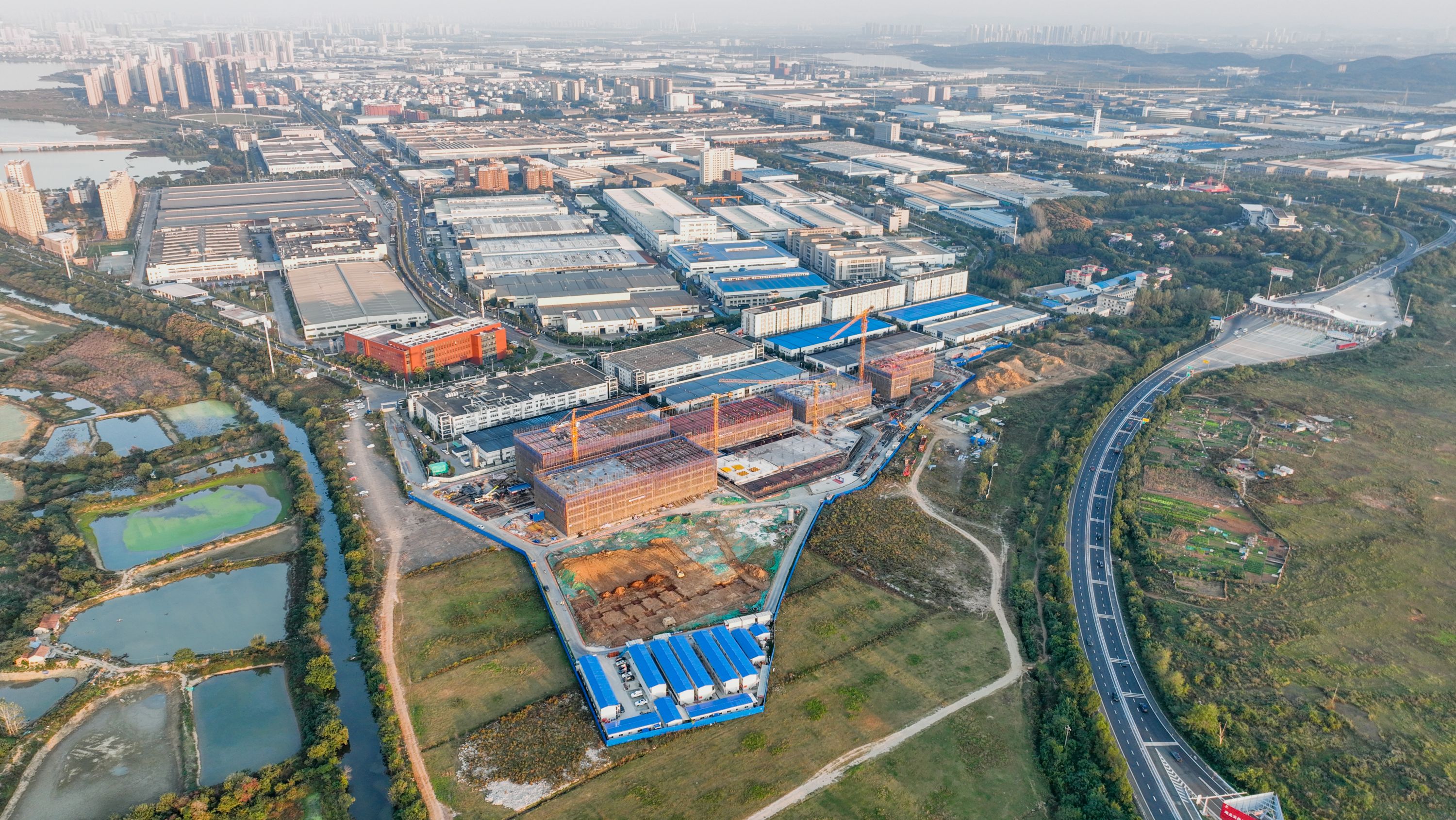 项目常务副经理朱军介绍,正在建设的武汉园区毗邻武汉绕城高速和东风大道,项目总建筑面积约11万平方米,建设内容包括双层厂房、多层厂房、综合楼以及地上地下停车场等配套设施,共分为10个单体,最高楼为综合楼,地上15层,高61.8米,建筑面积1.5万平方米。