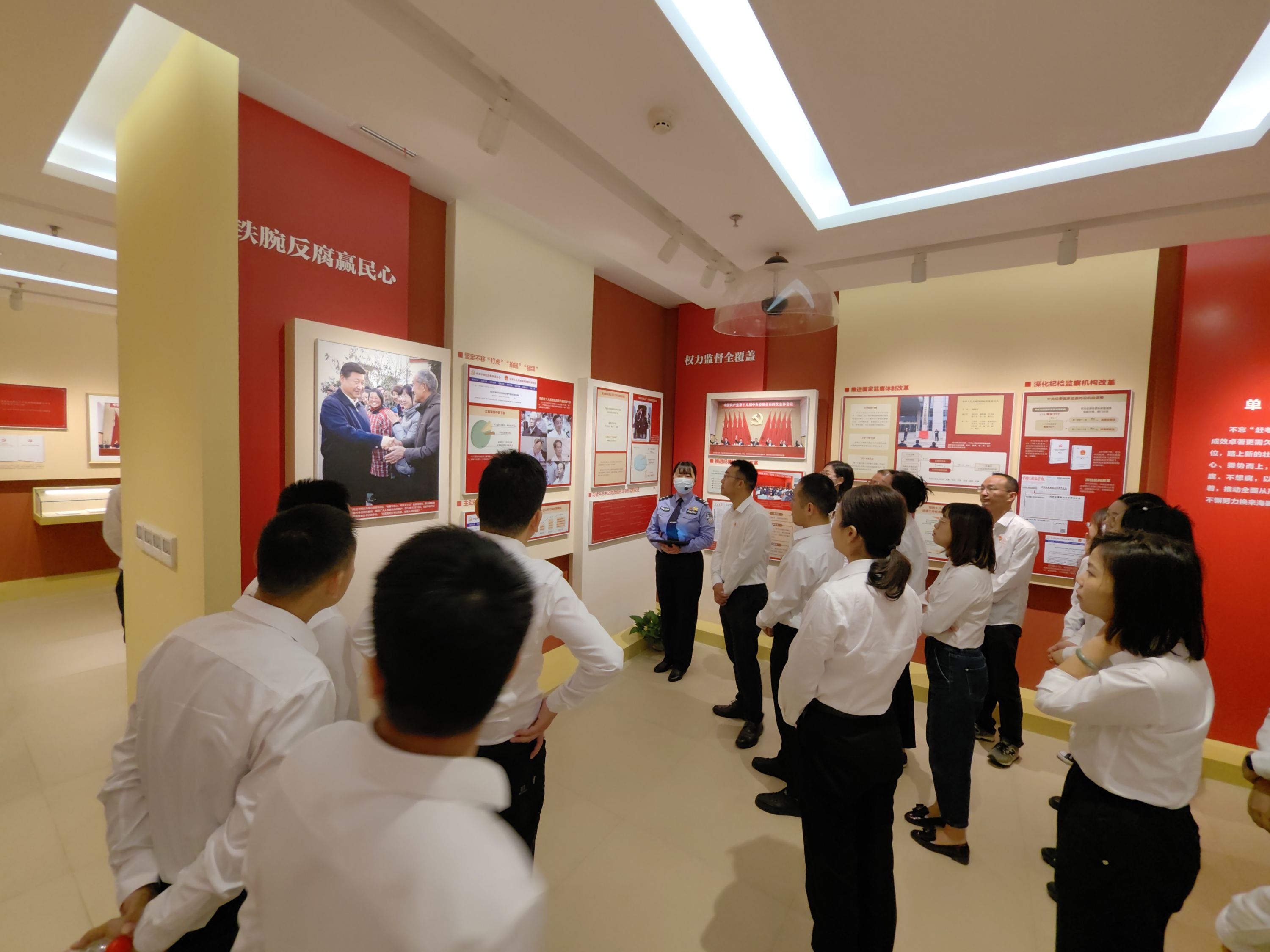 “治国必先治党,治党务必从严。”在讲解员的引导下,全体人员系统回顾了中国共产党的“赶考”之路,详细了解从严治党的战略部署和取得的重大成就,领悟中国共产党一以贯之推进全面从严治党的决心,感悟中国共产党勇于自我革命的鲜明品格。