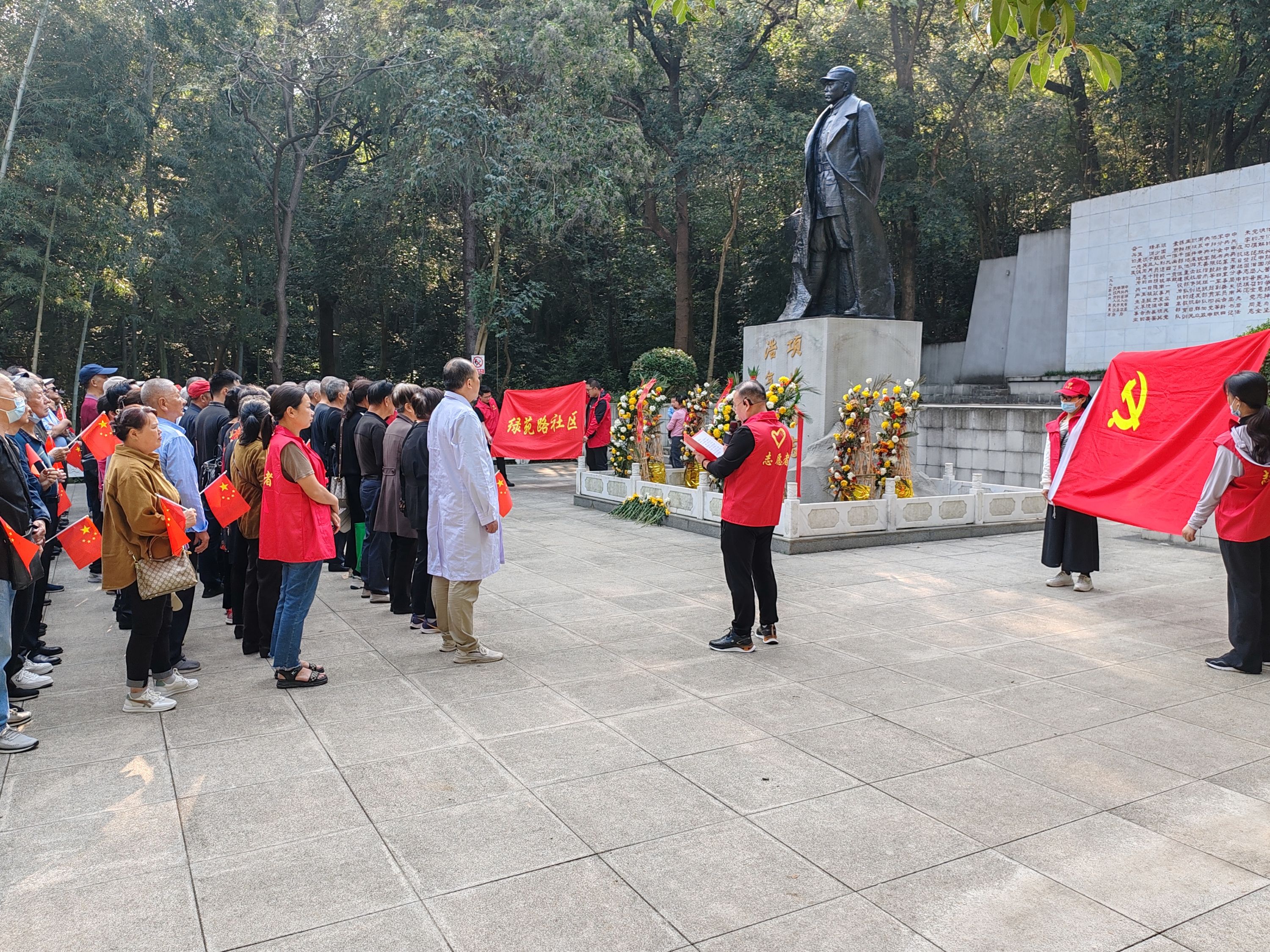 在项英烈士纪念碑前,全体党员重温入党誓词并向烈士献花,表达对烈士崇高的敬意和深切的悼念。
