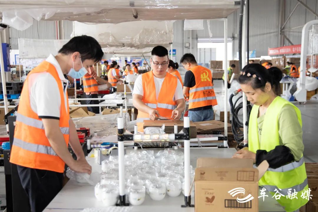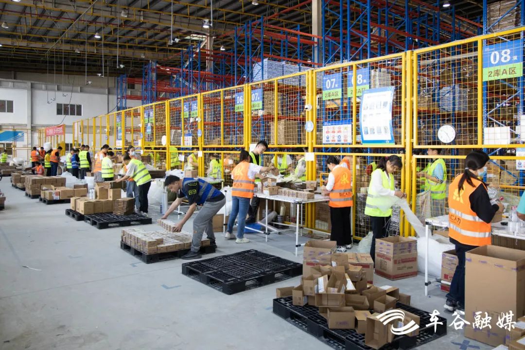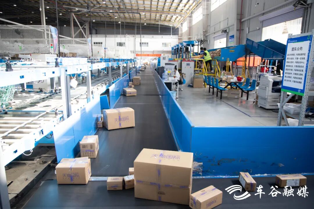 走进菜鸟武汉跨境保税仓,眼前就是一片热火朝天的工作景象。在批量打包区,工作人员装盒、打包一气呵成,粘胶带的声音此起彼伏;选货区内,不少工作人员比对电商订单选货、验单,包裹在传送带上往来穿梭。