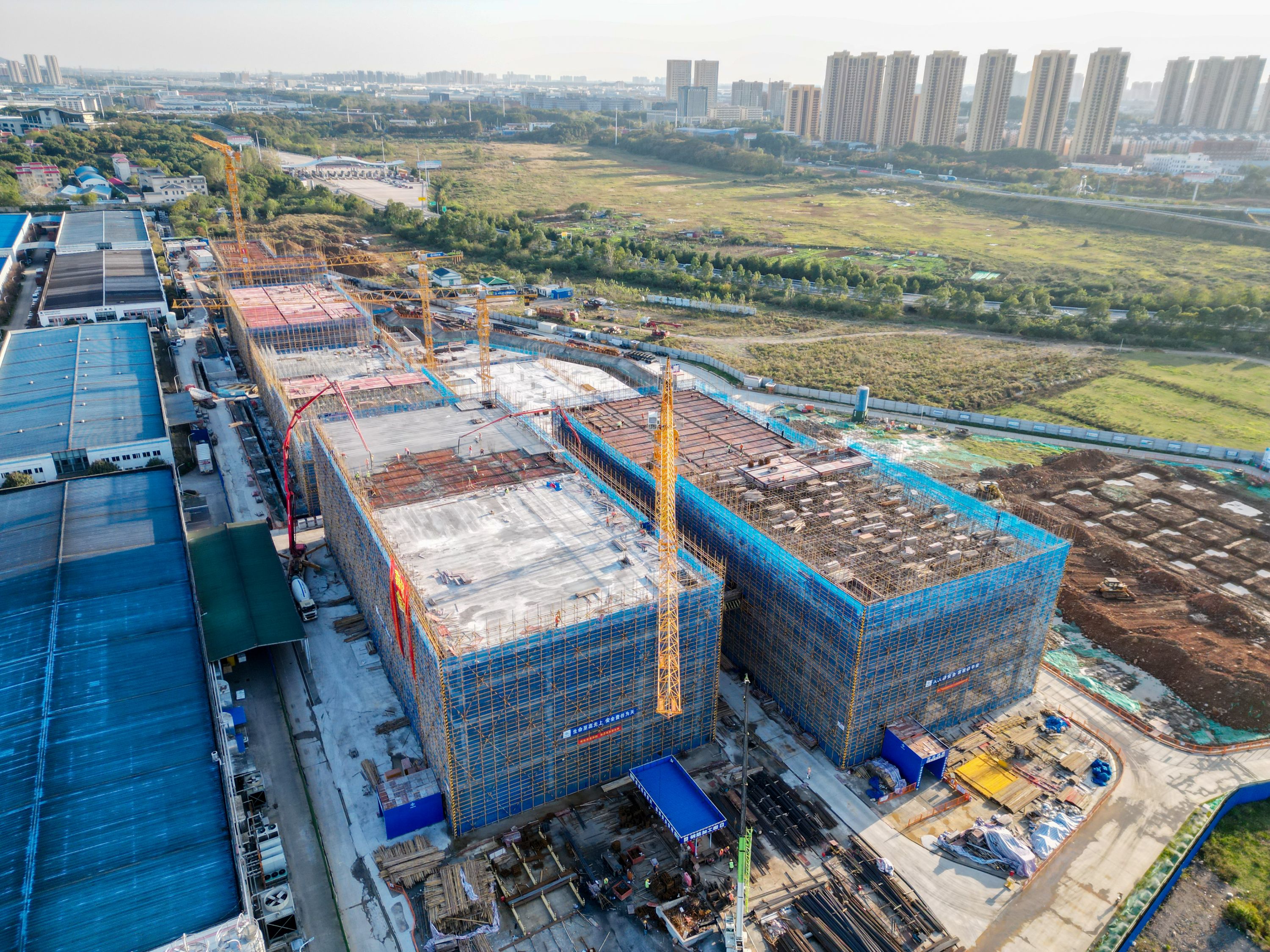 该项目毗邻武汉绕城高速和东风大道,总建筑面积约11万平方米,建设内容包括双层厂房、多层厂房、综合楼以及地上地下停车场等配套设施,共分为10个单体,最高楼为综合楼,地上15层,高61.8米,筑面积1.5万平方米。项目于2023年3月正式工建设,计划于2024年7月底全面竣工验收。