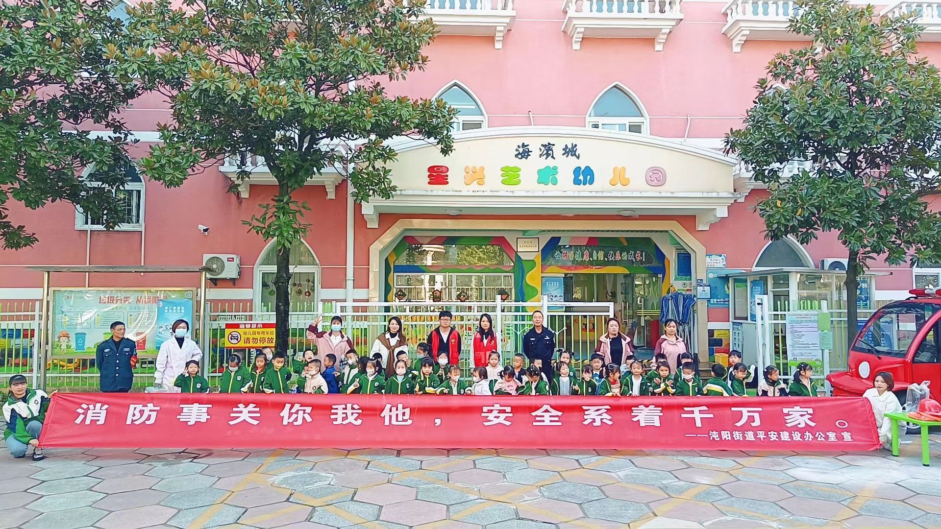车谷融媒11月10日讯 11月8日,在“119”全国消防安全宣传教育日来临之际,沌阳街道海滨城社区联合星兴艺术幼儿园、沌阳派出所开展消防疏散演练活动,邀请官湖郡救援站的“火焰蓝”们,为孩子们带来了一场快乐与知识交织的消防之旅。