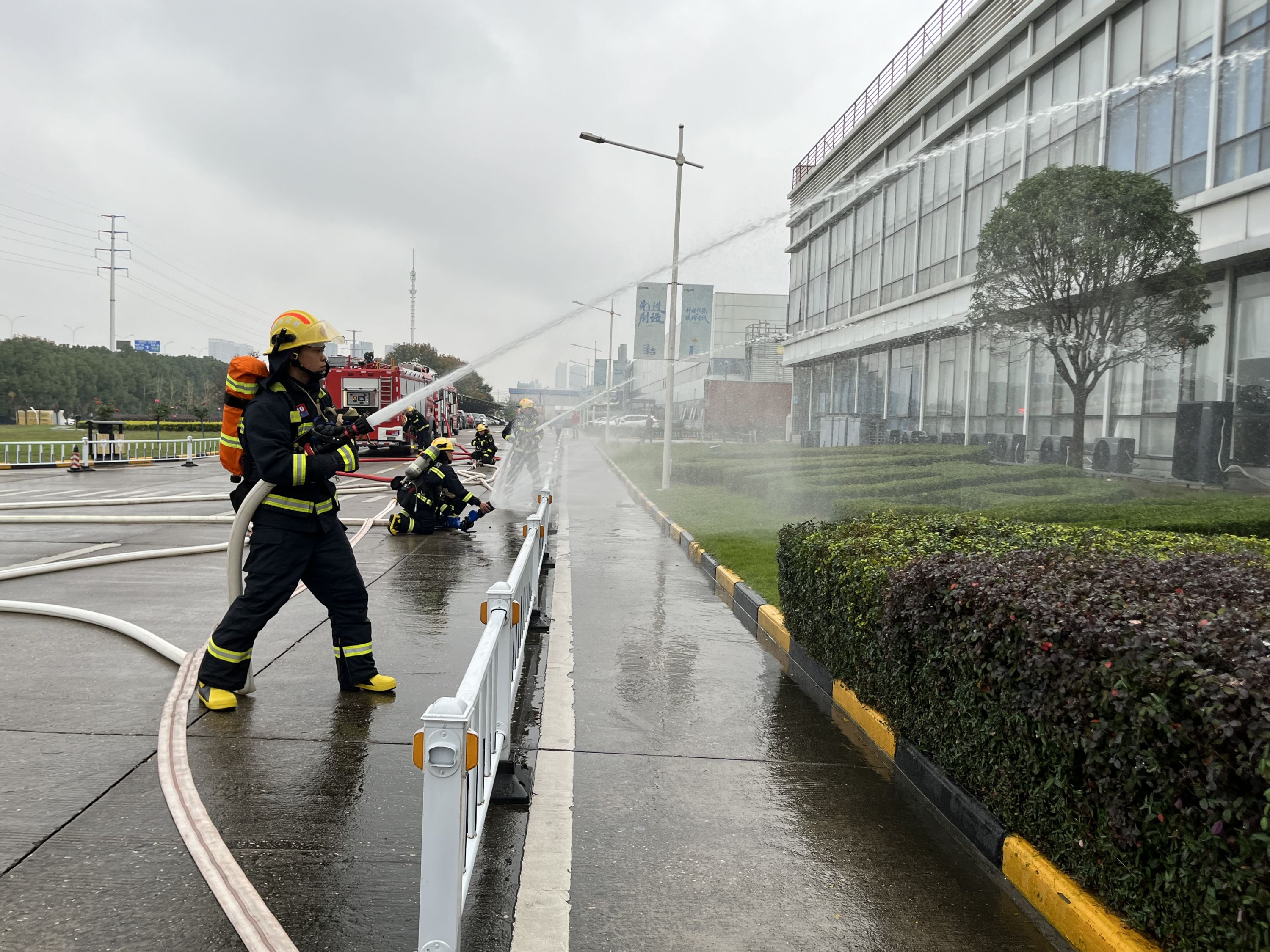 车谷融媒11月10日讯 11月9日上午,武汉经开区消防救援大队联合美的武汉智造工厂开展消防应急演练。
