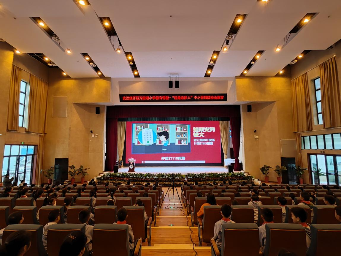车谷融媒11月10日讯 2023年11月9日是第32个全国消防日,当天,武汉经开区工委宣传部、区教育局、新华社新闻信息中心湖北中心在万家湖小学举行“《德育学堂》‘我是追梦人’中小学生消防安全教育”主题活动,提高中小学校消防安全管理水平,增强中小学生安全自护能力。武汉经开区消防救援大队的消防员代表参与本次活动,全校一千余名师生、家长同步收看直播。