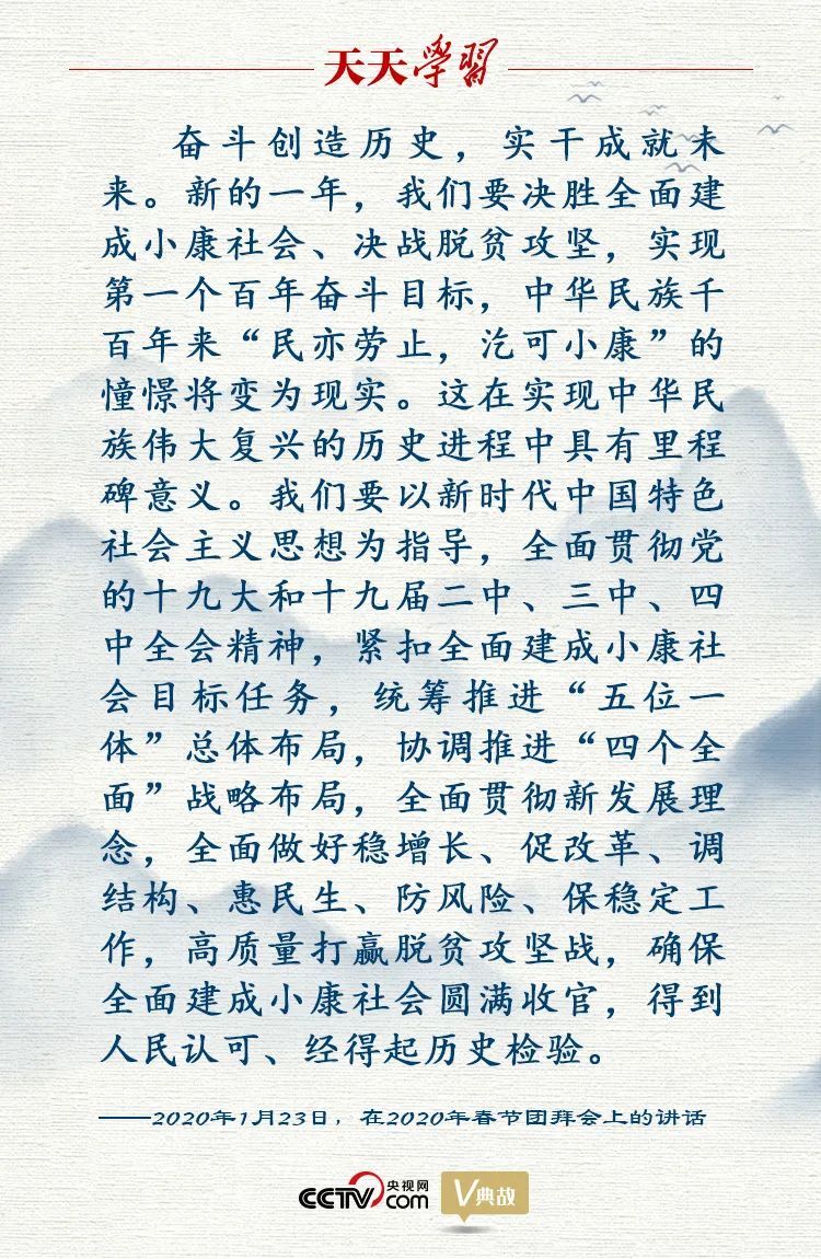 2020年注定是具有里程碑意义的一年,将在中华民族发展史上留下浓墨重彩的一笔。今年我们将全面建成小康社会,实现第一个百年奋斗目标,是实现中华民族伟大复兴中国梦的关键一步。在2020年春节团拜会上,习近平总书记曾引用《诗经》中的“民亦劳止,汔可小康”,对“小康”的概念进行历史溯源。