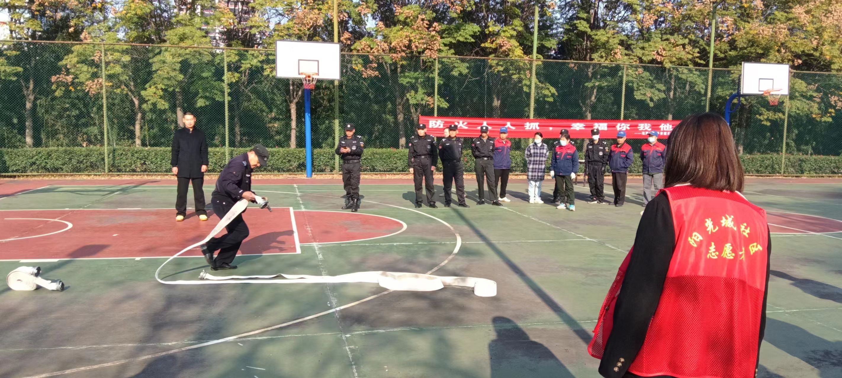 车谷融媒11月16日讯 每年的11月是全国消防宣传月。近日,沌阳街道阳光城社区联合物业公司开展“预防为主 生命至上”消防应急实战演练,增强社区居民的消防安全意识,提高自治自救能力。