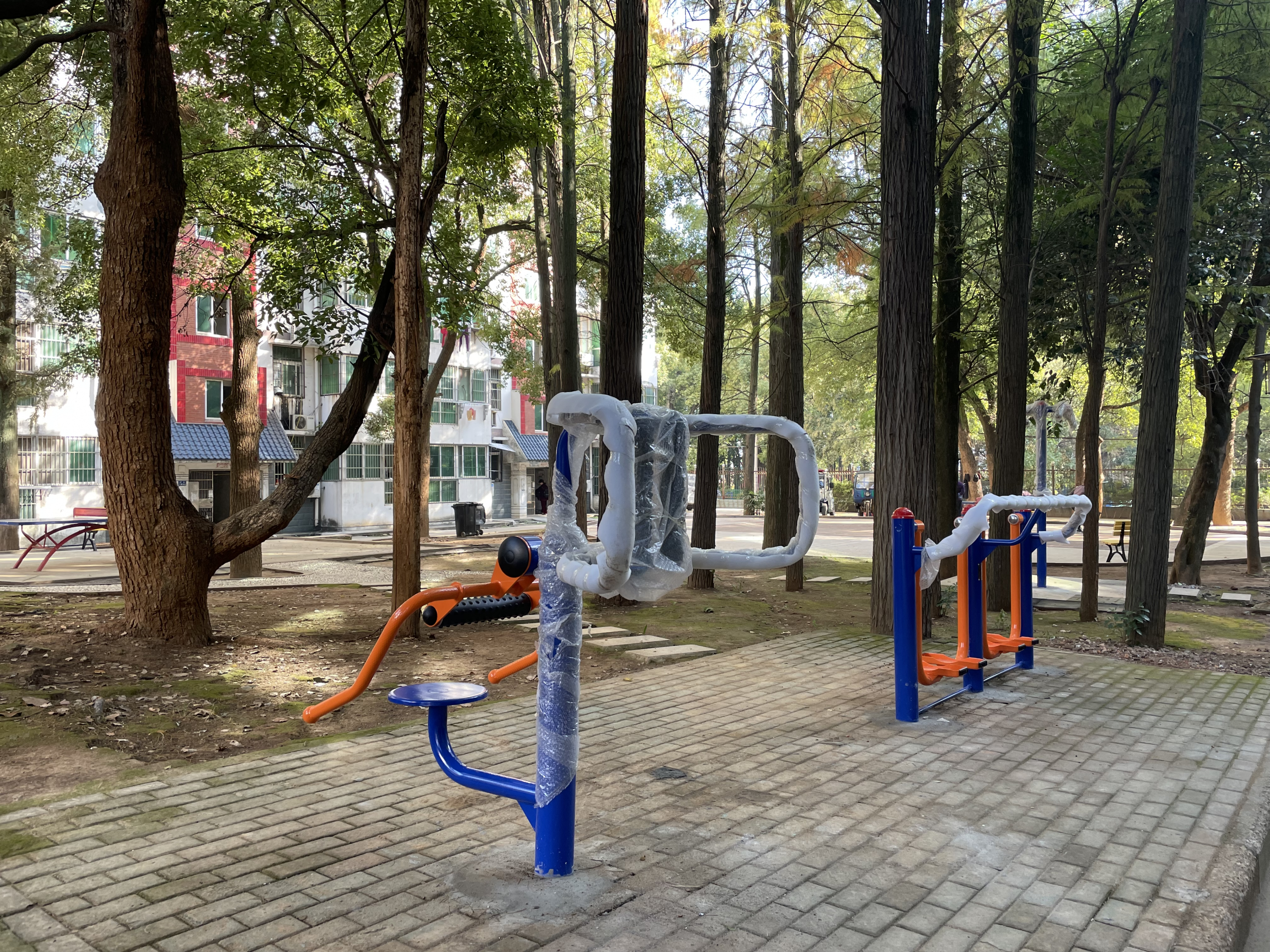 当天,社区组织施工人员安装了上肢牵引器、太空漫步机、腰背按摩器及6把休闲座椅。