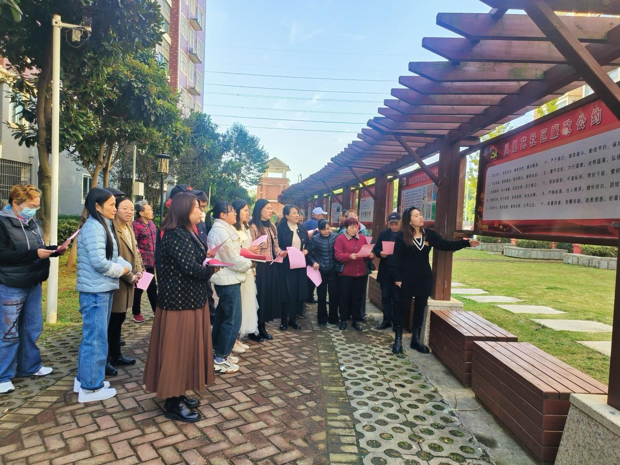 车谷融媒11月23日讯 11月20日上午,军山街道凤凰苑社区开展“弘扬清廉家风 厚植廉洁文化”宣讲活动,邀请社区党员代表走进社区,以家风倡廉、家庭助廉、阵地宣廉等形式,感悟清廉家风文化,汲取清廉家风力量。