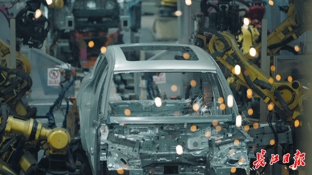 生产线上,一台台机器人正在抓取、组装、焊接、输送,滋滋的焊接声中,这些“钢铁侠”挥动手臂、旋转腾挪,几十秒后,一个崭新的银色外壳便送往下一条流水线。