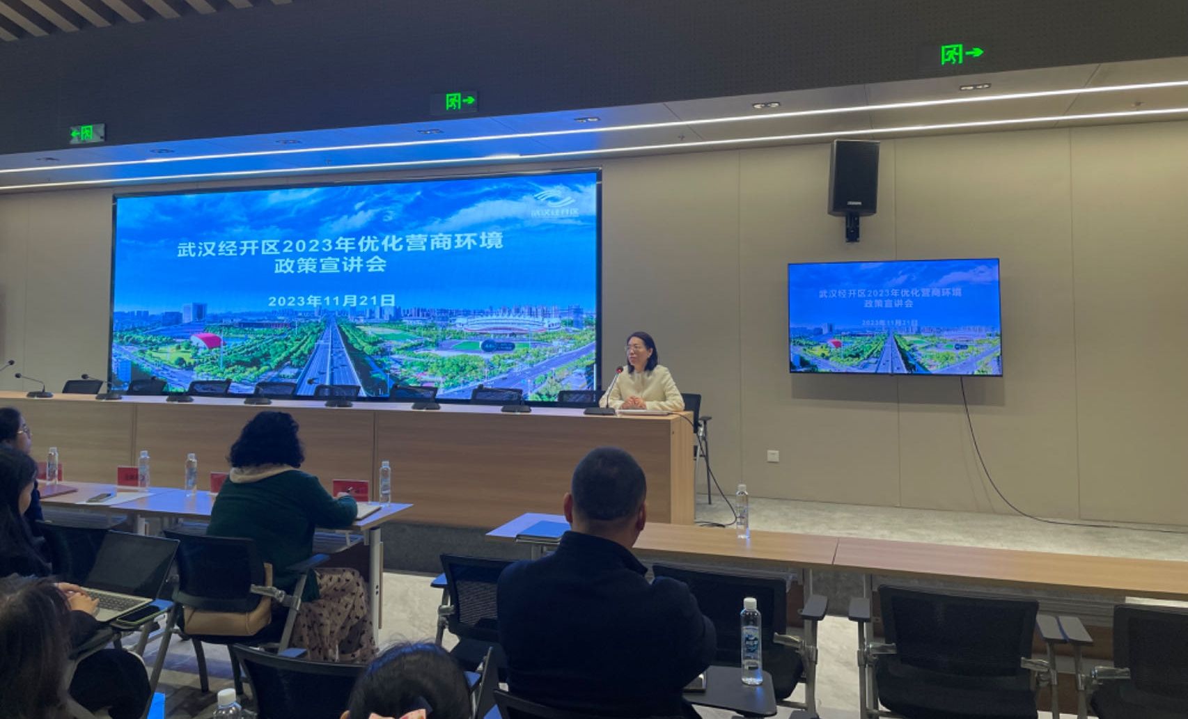 车谷融媒11月23日讯 为提高优化营商环境政策措施的企业知晓率和覆盖率,帮助企业“读懂、会用、尽享”优惠政策,11月21日,武汉经开区2023年优化营商环境政策宣讲会分别在军山新城、智能网联和电动汽车产业园、智能制造产业园和现代服务业产业园举办。